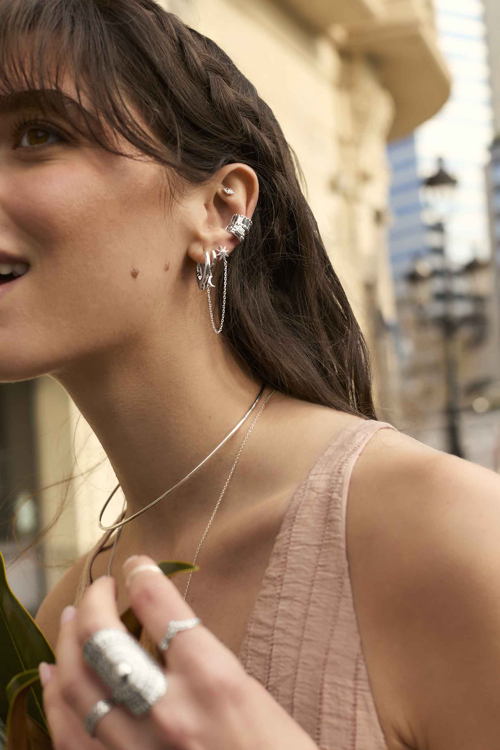 You can wear this chain earring in whatever order you want; and in the hole that you like best. It's not an ear cuff! You will need at least two holes in the same ear to wear the KAUR earring.