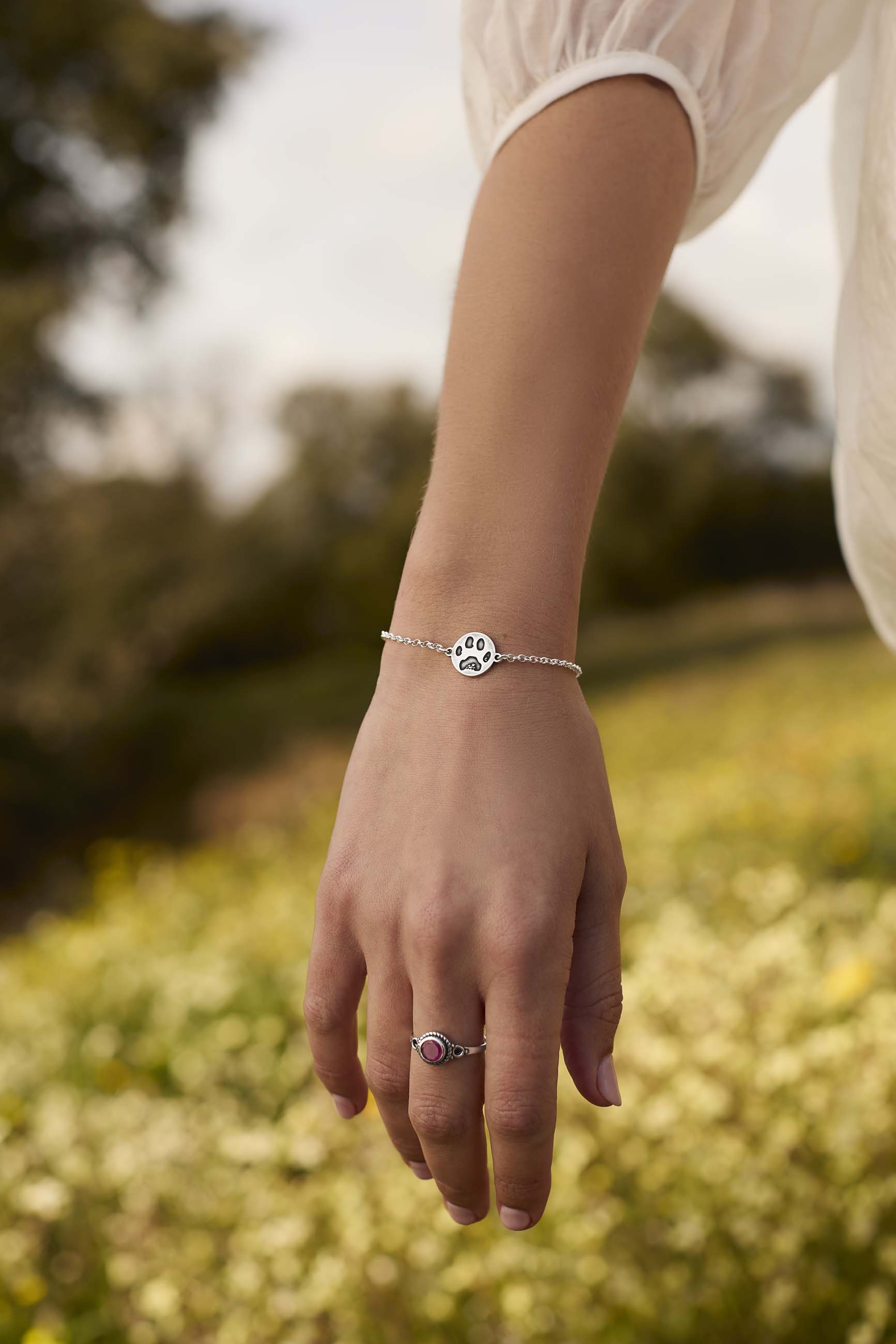 The SHARAMA bracelet is a very original and unique piece of jewelry. It's meant for all of us who love animals and puppies. It is a real dog print, specifically our little dog's print, Asia.