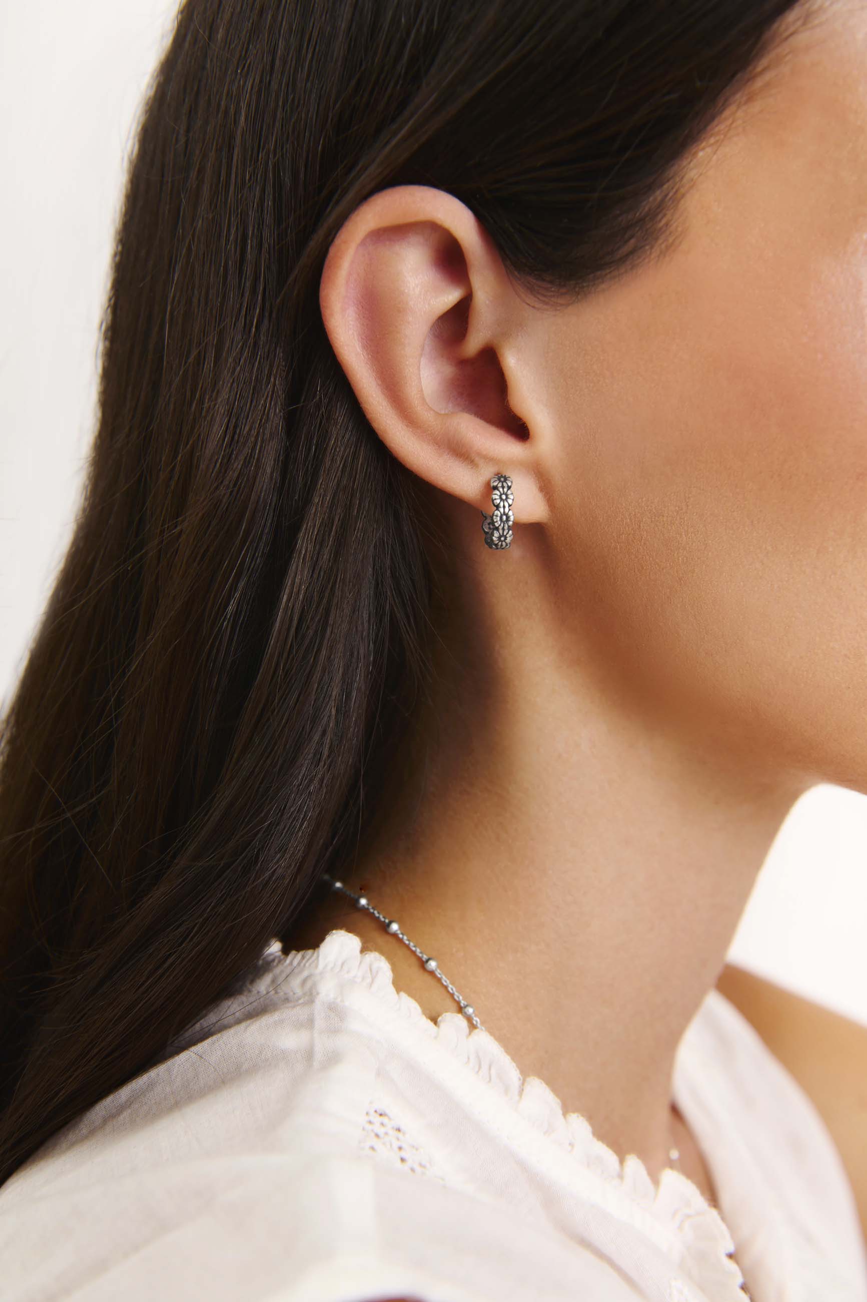 The GARATI earrings are made of 925 Sterling Silver and formed by a ring of small flowers with an antique finish. They are unique!
