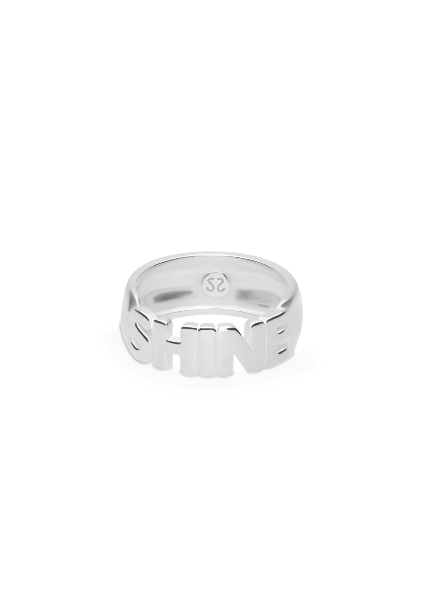 The CHAMAKATA ring, available in sizes 8 to 20, is a modern and fun piece of jewelry that combines design and meaning. Crafted in 925 sterling silver, it features the word "Shine" in its design, an invitation to have fun and stand out in any occasion.