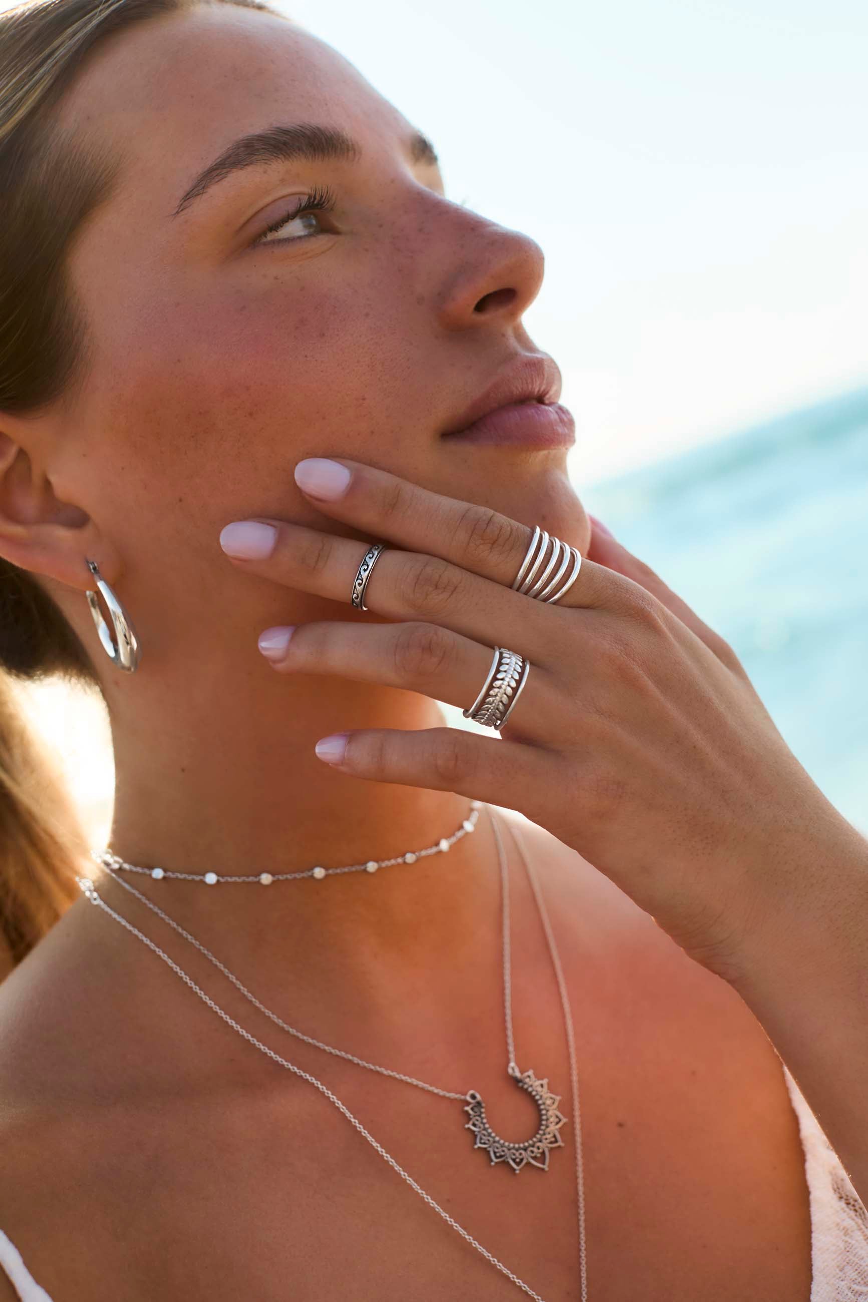 The LAINEN ring is a a 925 Sterling Silver ring made up of five silver lines, which join at the back and leave a gap between the lines at the front. The effect is very eye-catching and beautiful.