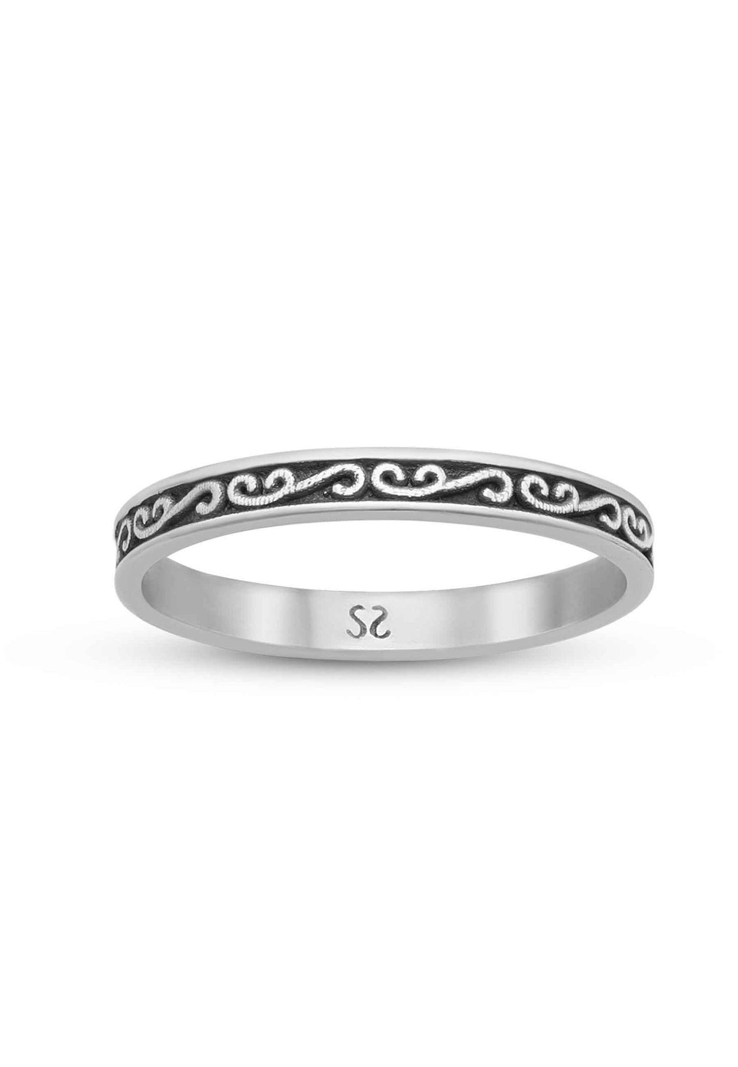 The MAAYA ring is a small ethnic style jewelry piece. It is made of 925 Sterling Silver with aged finish.