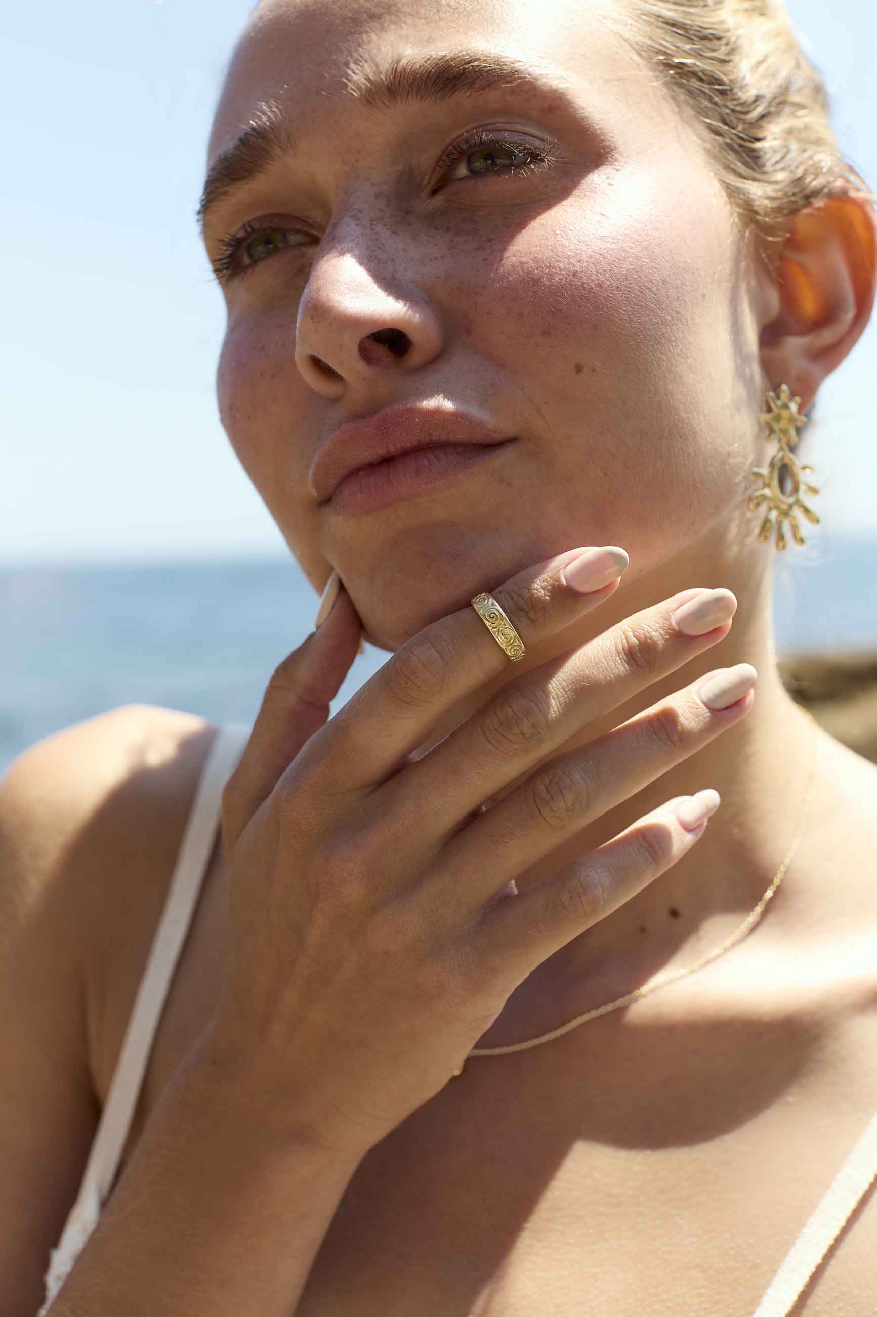 The MALAVAK Midi ring plated in 22-karat gold is a delicate and versatile jewel, perfect to wear as a phalanx ring or toe ring. Its adjustable design (sizes 4 to 10) and ergonomic shape allow it to comfortably fit different positions on your hands.