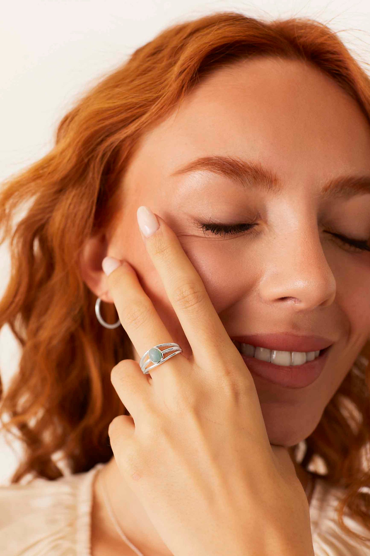 The PREMA ring is an oval ring you love. The Amazonite stone stands out like principal element, it makes this ring so special.