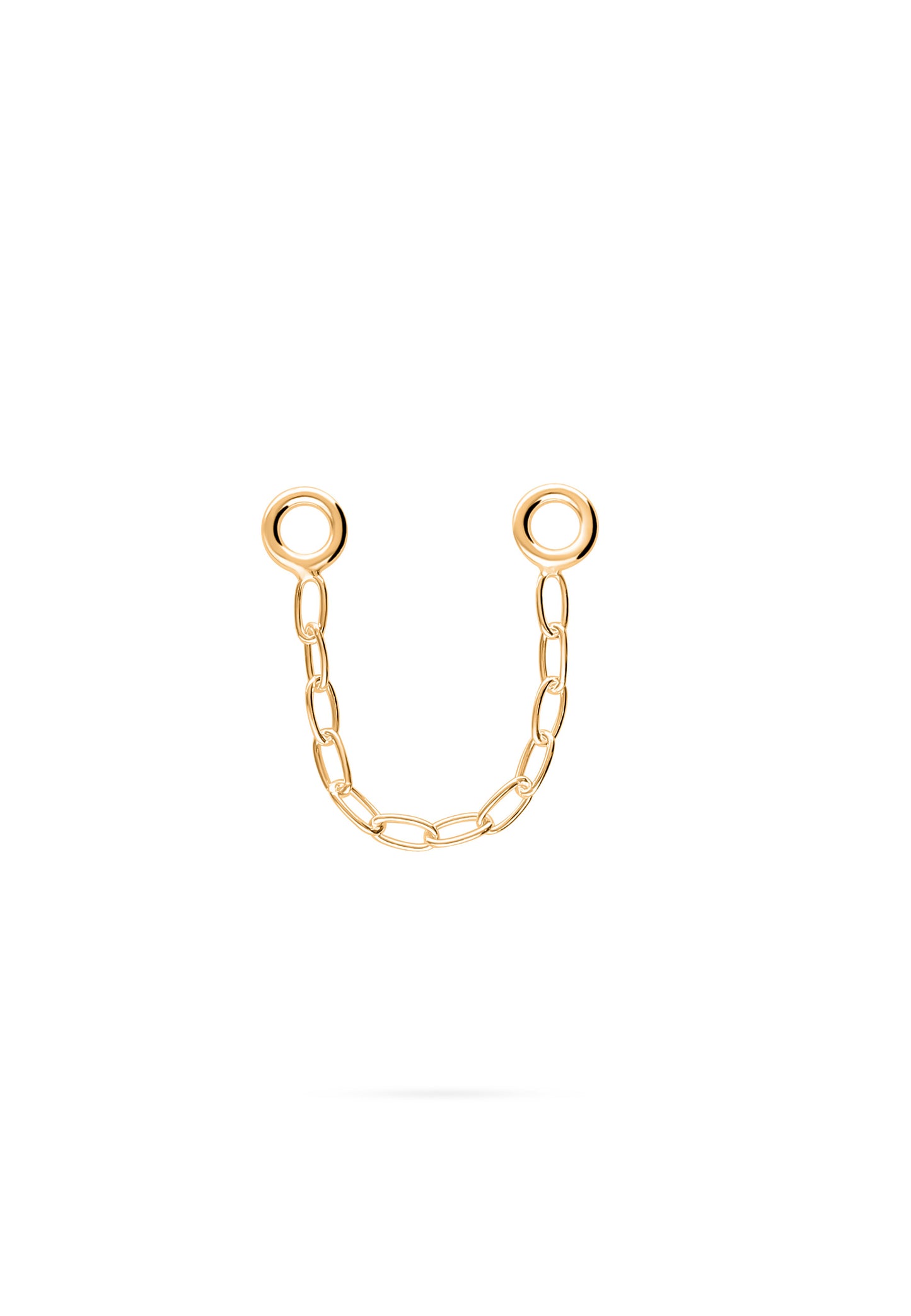 This 925 sterling silver and gold-plated chain is an elegant and functional piece designed to complement your earrings or piercings. It is composed of two rings at the ends, allowing you to easily attach it to the back of your earrings.