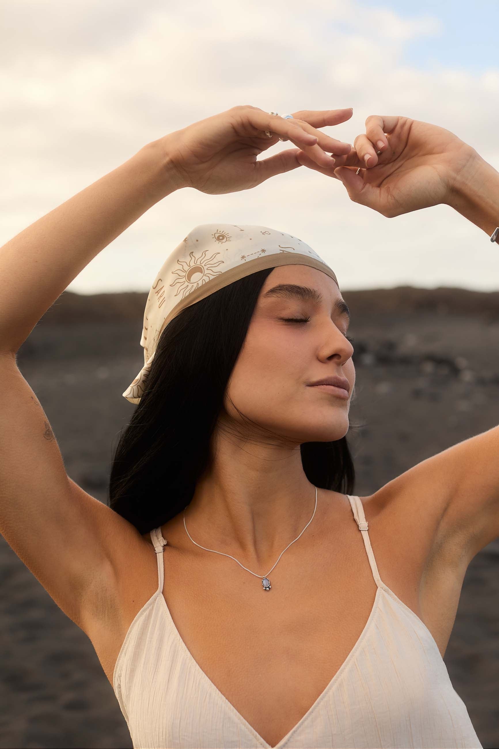 The San Saru is the perfect accessory for those seeking versatility, style, and a boho touch with a mystical essence. Its design inspired by the sun and moon conveys balance, energy, and connection with nature.