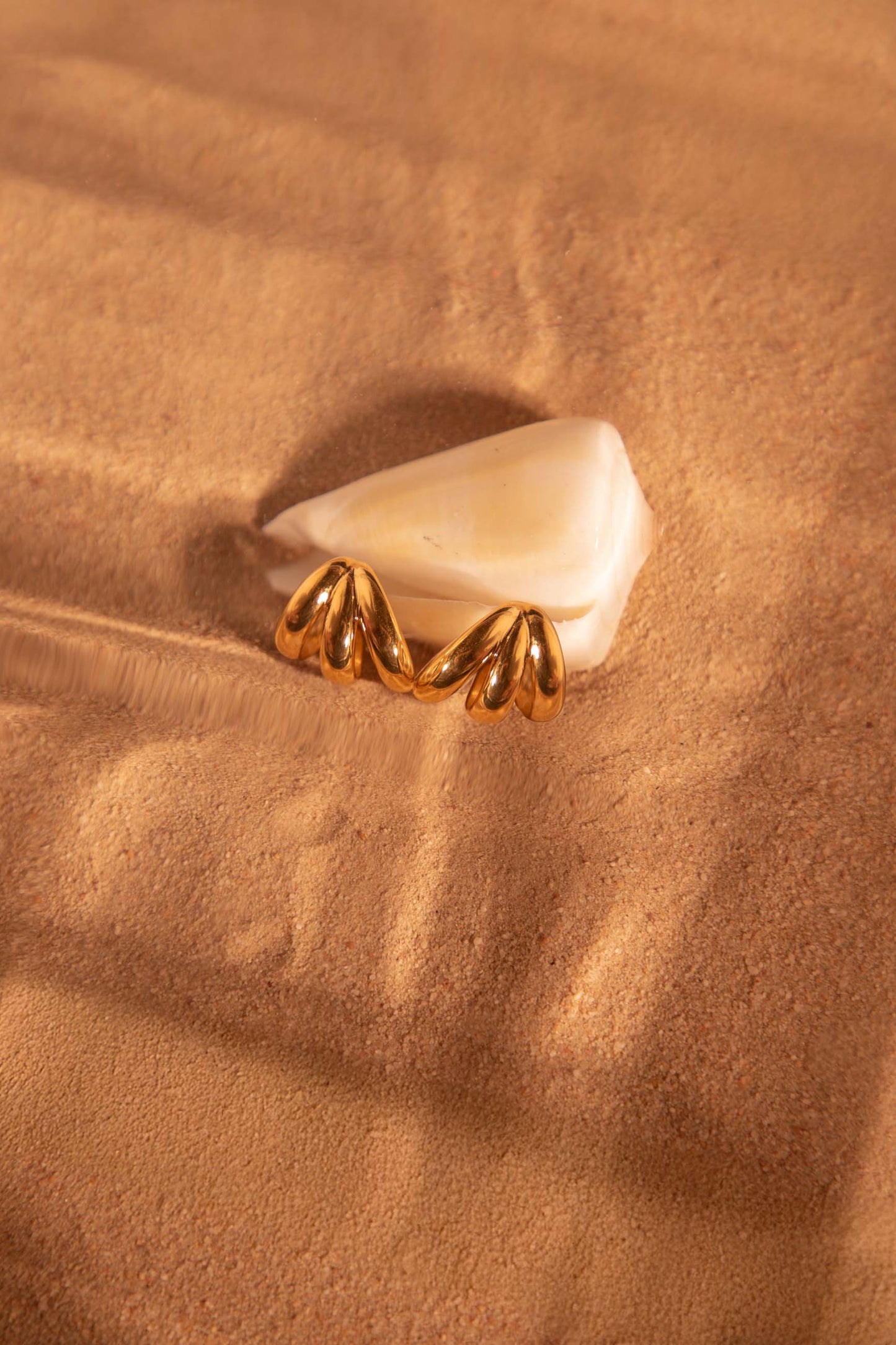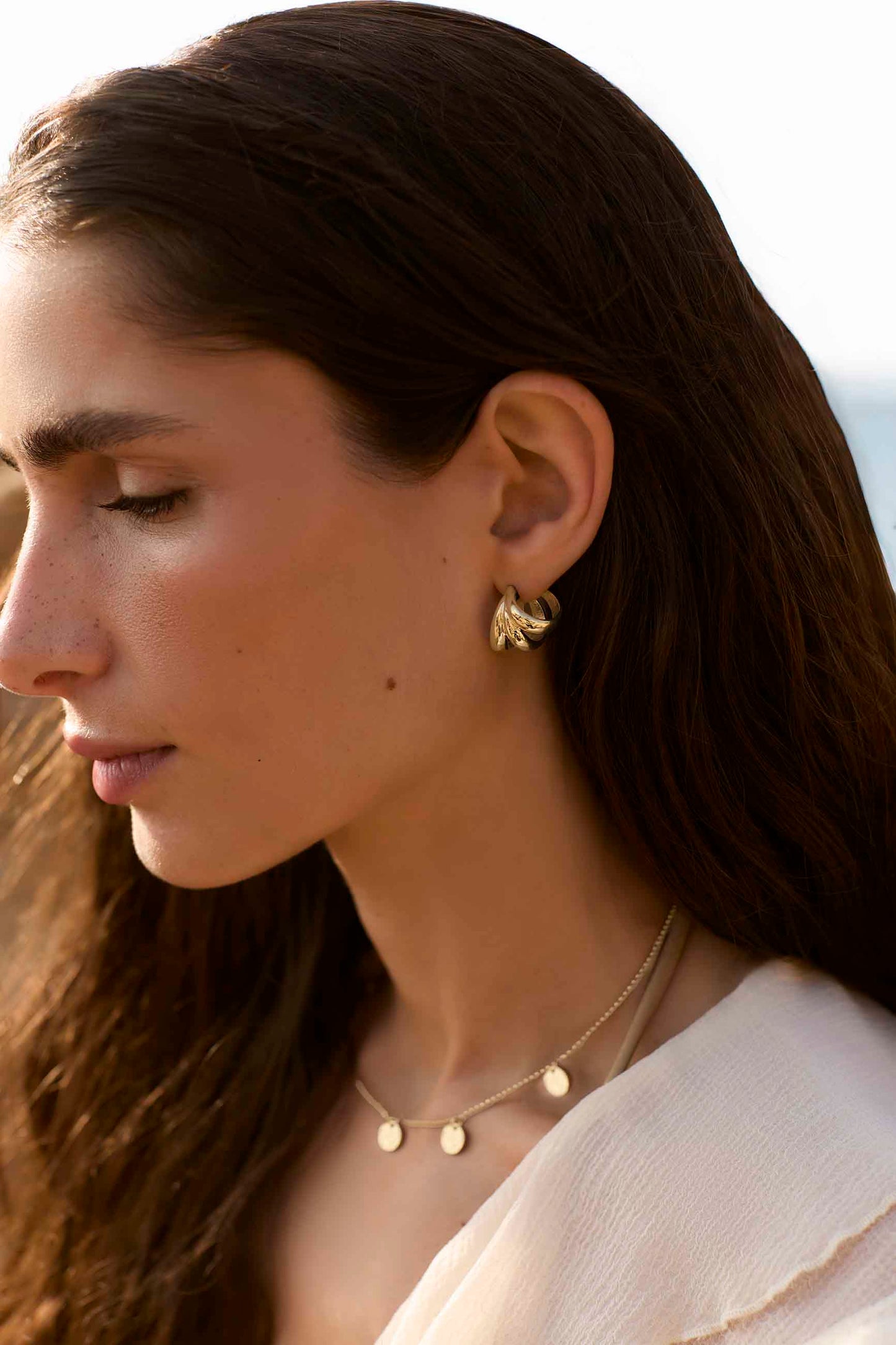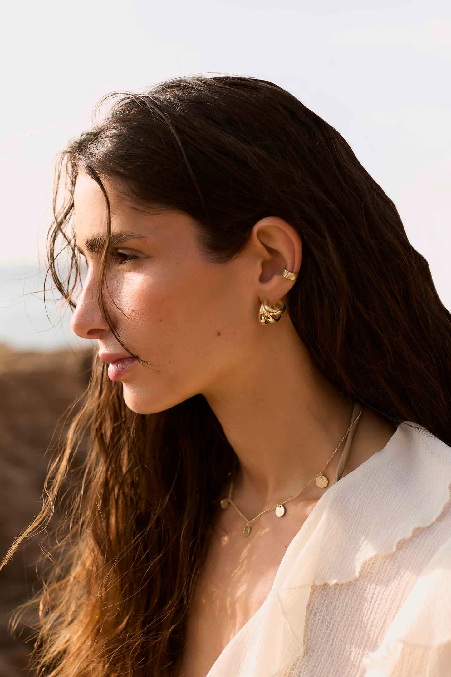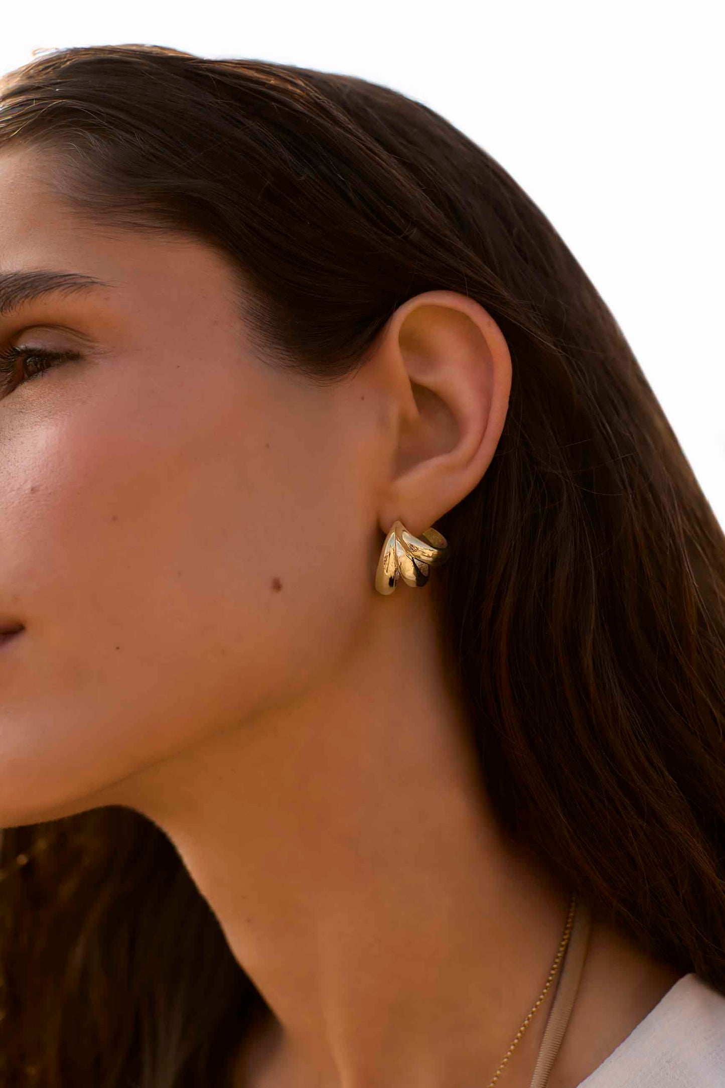 The TESARA Earrings in their 22K gold-plated version are bold and elegant. With a triple hoop design and butterfly back, they’re lightweight thanks to their hollow form.