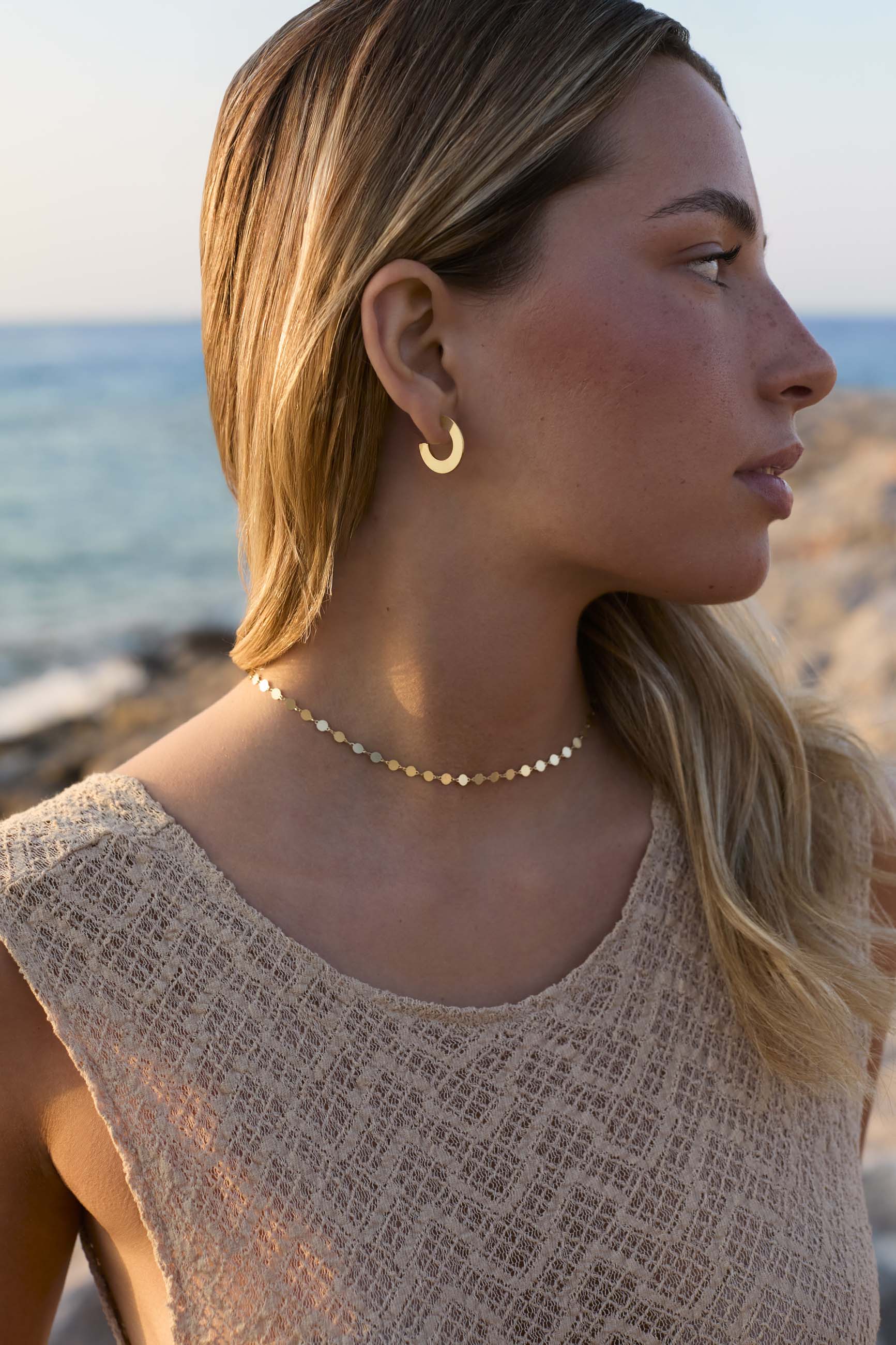 Combine these beautiful hoop earrings with more daring and colorful earrings with natural stones. You will love the result.