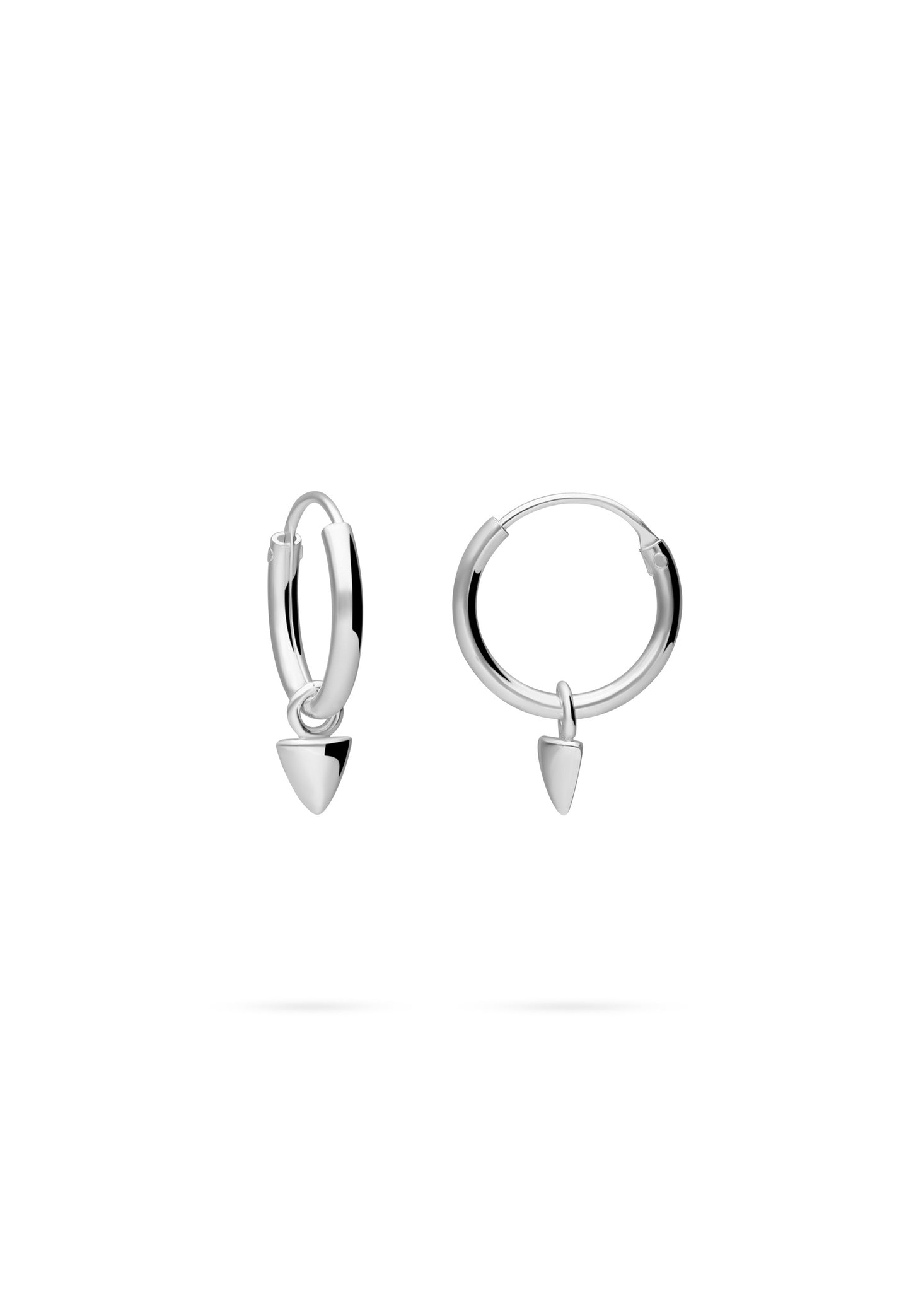 The NARENDRA earrings are 12mm diameter fine silver hoops with a small triangle hanging. They are made of 925 sterling silver. Their design is very simple: from the hoop hangs a small triangular-shaped piece that gives them a very subtle and original touch, similar to an arrow.