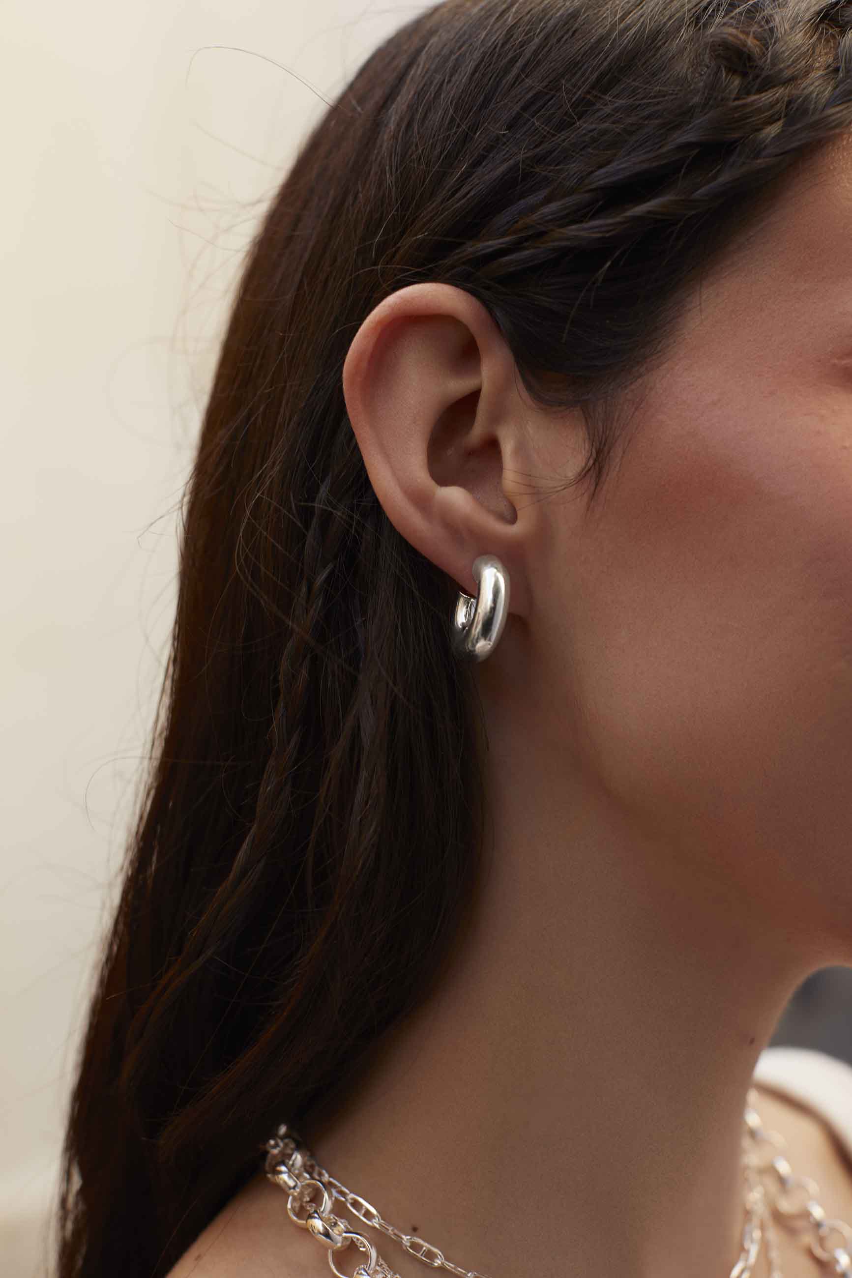 The 925 sterling silver Pranay earrings feature a simple design, but with moderate thickness and a discreet size, allowing you to easily combine them with other accessories.
