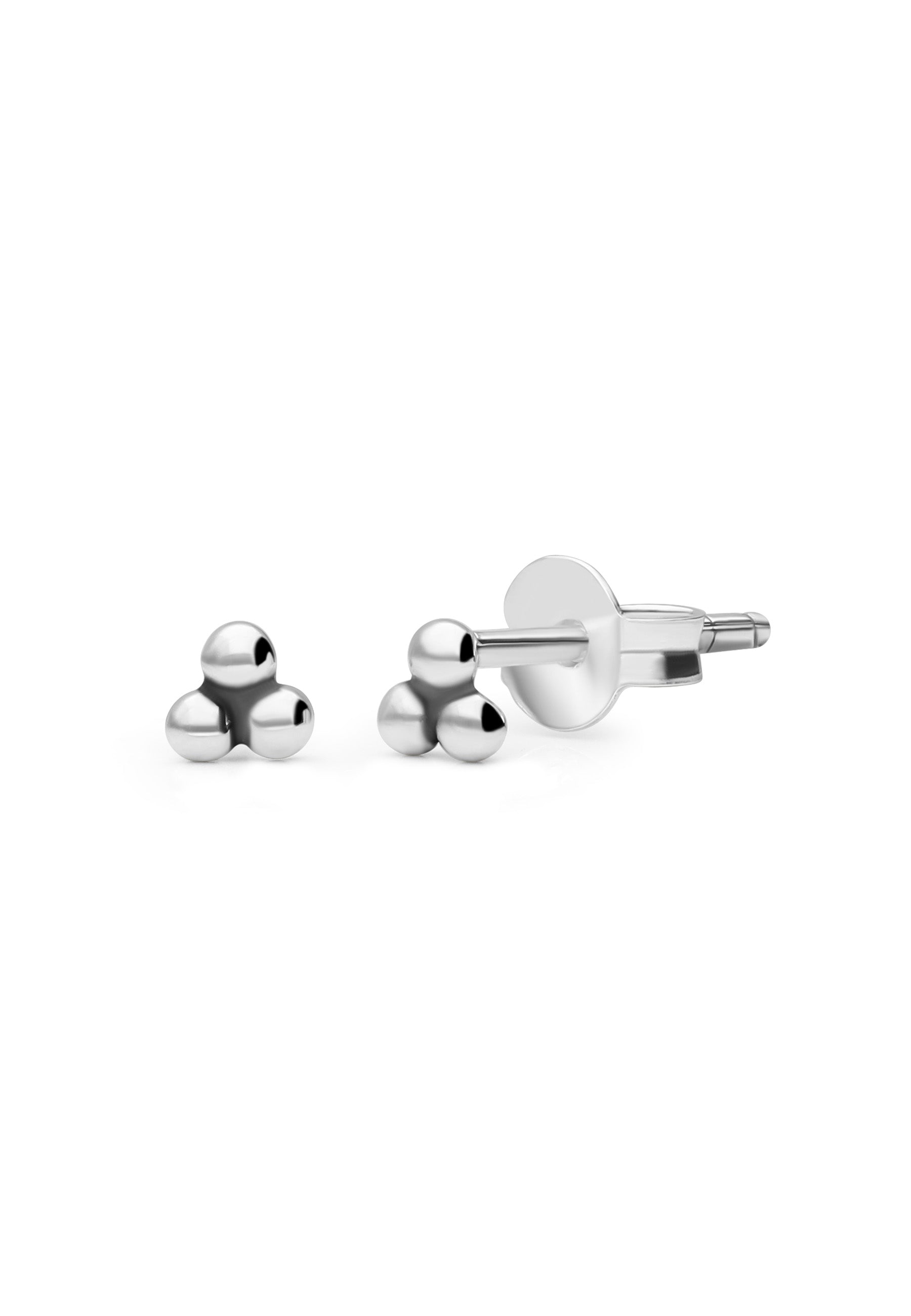The YATIN earrings are formed by three small silver balls joined to form a kind of triangle together