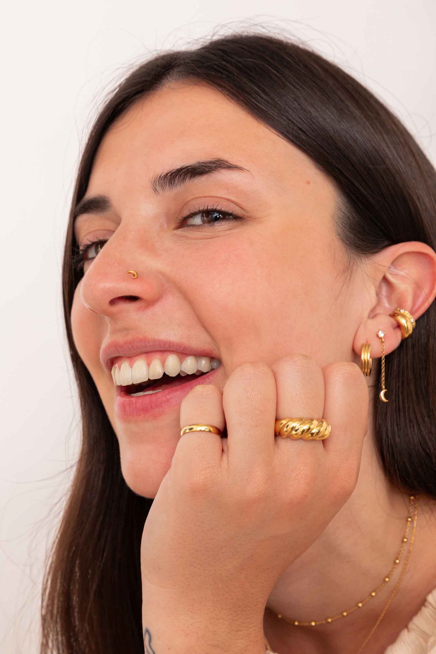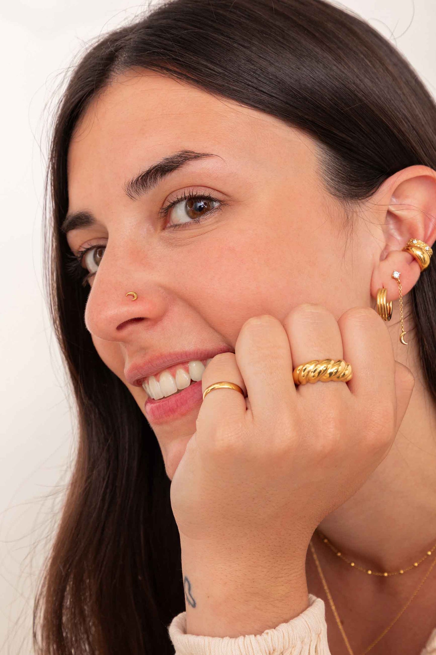 This gold version of the LAGHU piercing is perfect to wear as a special detail or combined with other sky-inspired golden pieces. A small gesture full of meaning.
