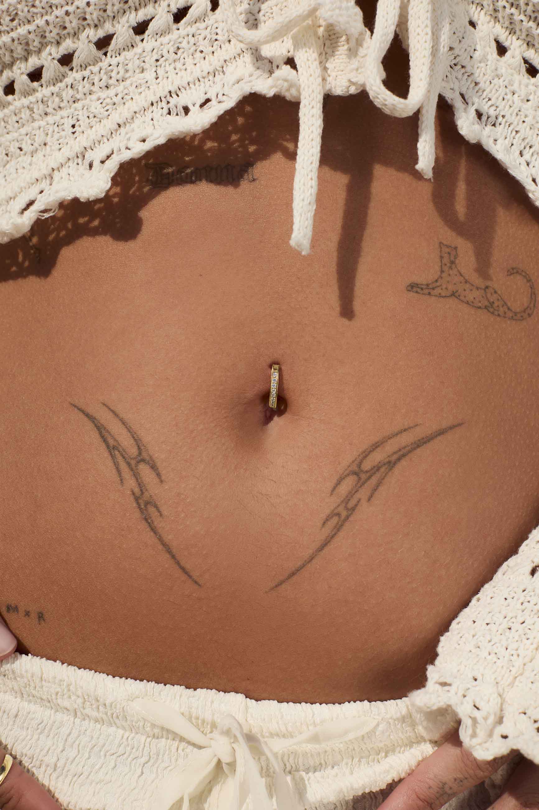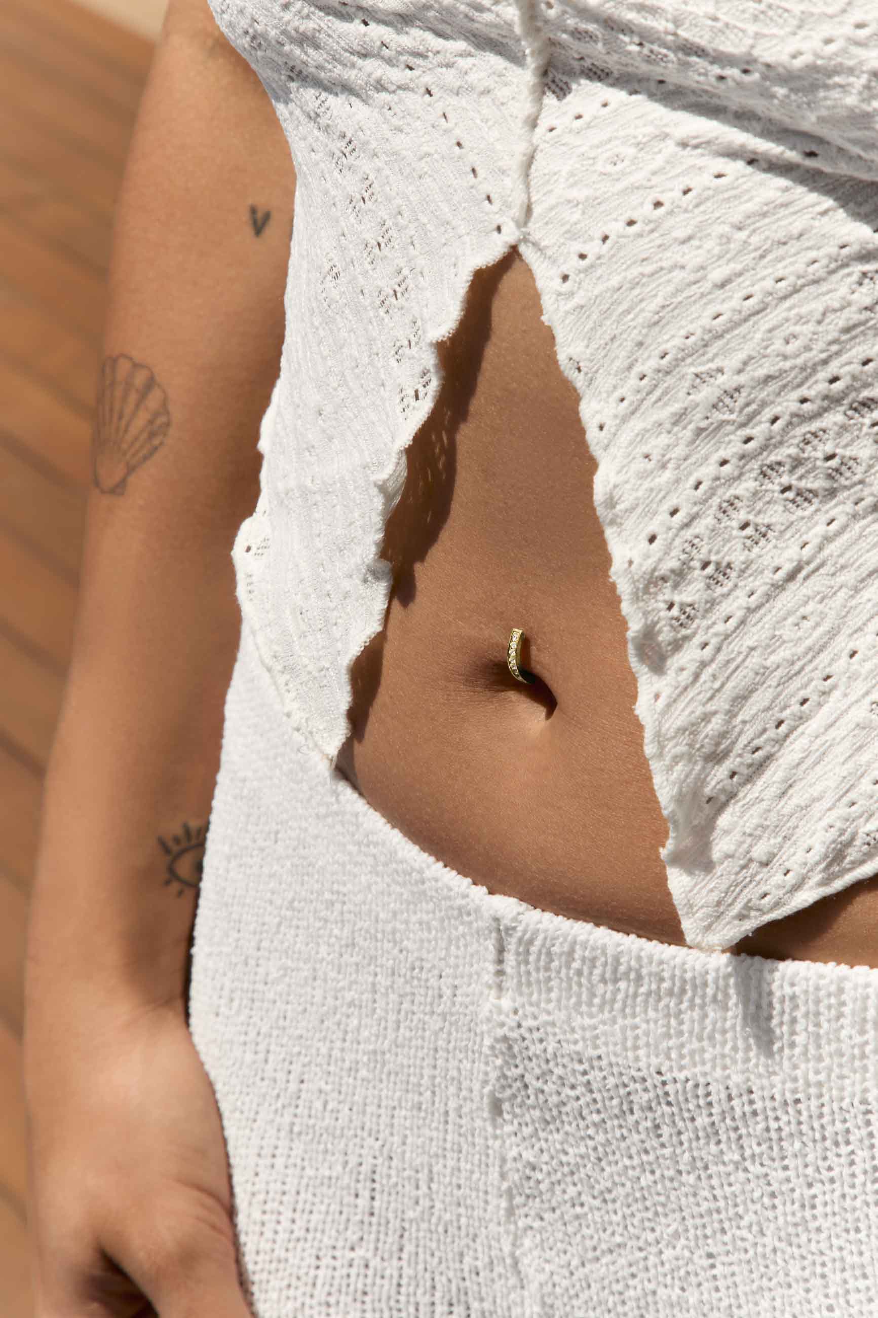 Adorned with white zirconia stones on the front, LEN reflects the light in a subtle and refined way, adding a warm and sparkling touch to your belly button. Every detail has been crafted to provide a polished and luminous finish.