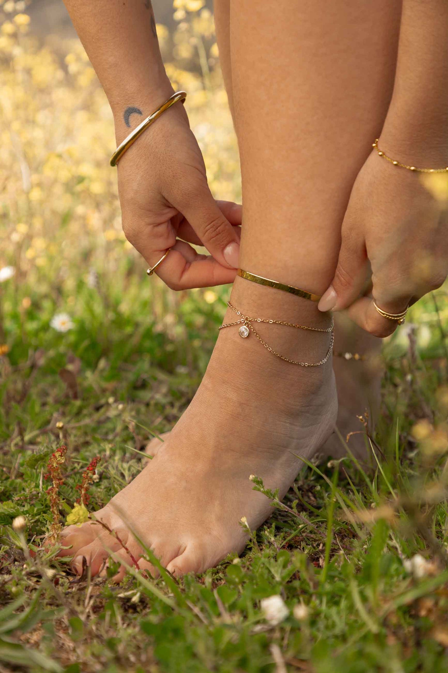 The KESAVA GOLD is a double chain anklet made of 925 sterling silver and 22 carat gold plated. It is a fine and elegant piece of jewellery, you will love it!