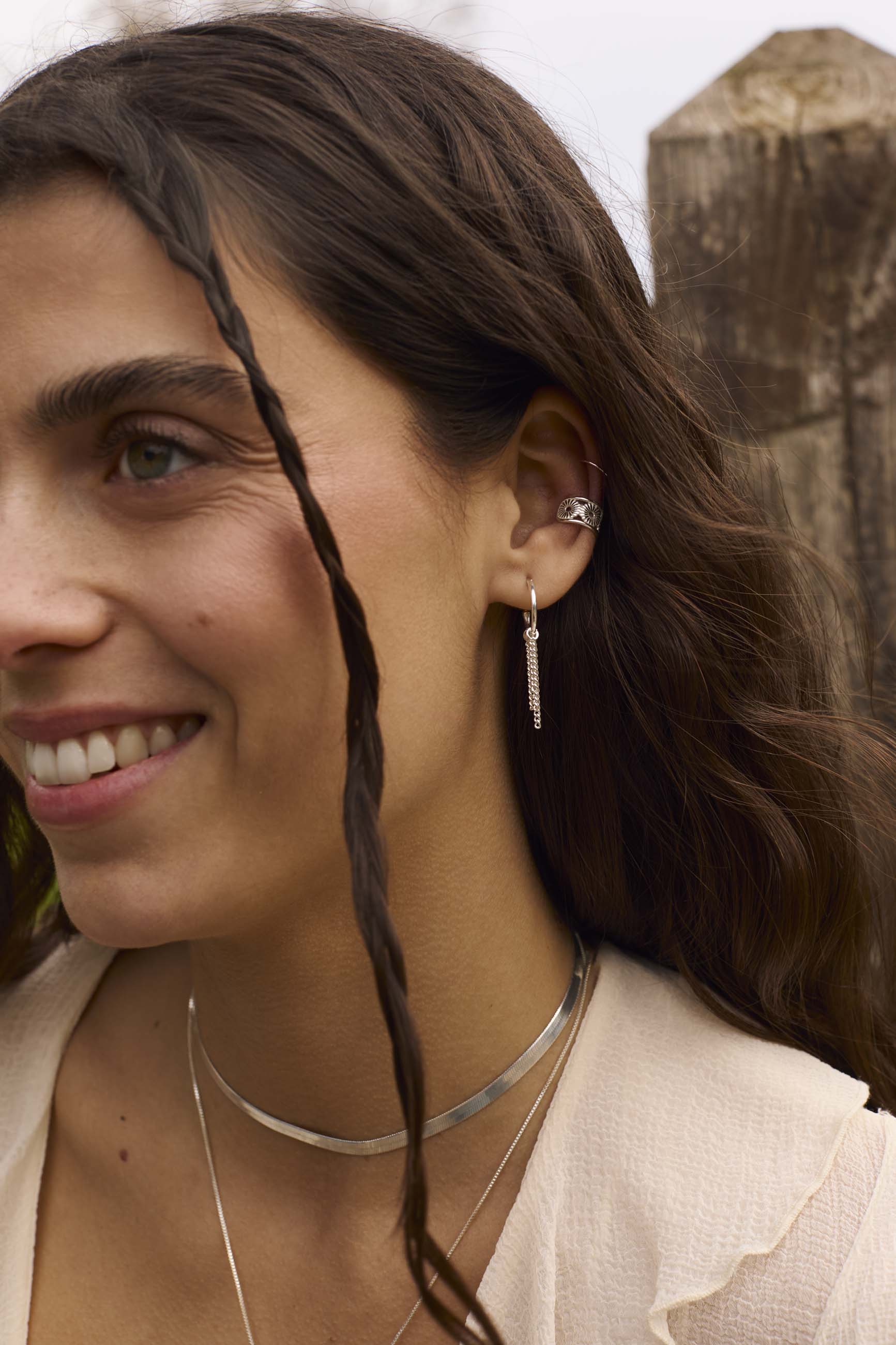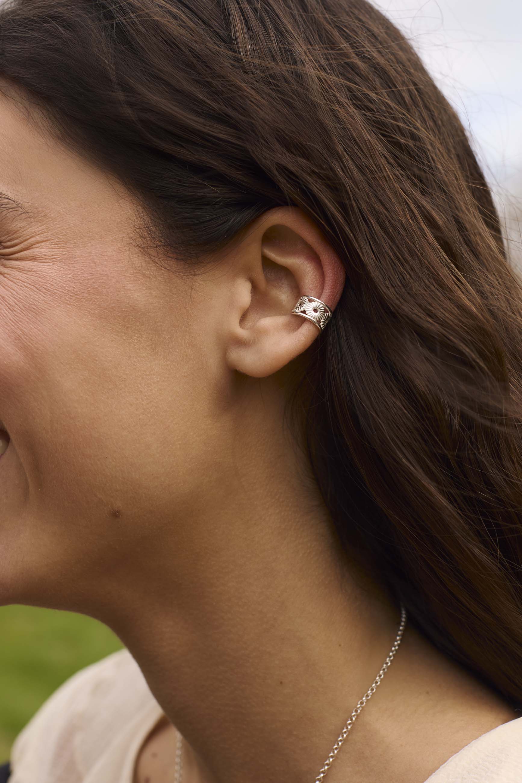El ear cuff Suman incorpora una preciosa cenefa de margaritas totalmente combinable con los pendientes Pushpa, aporta una toque armónico y muy fácil de llevar con cualquier combinación de pendientes de estilo Boho.