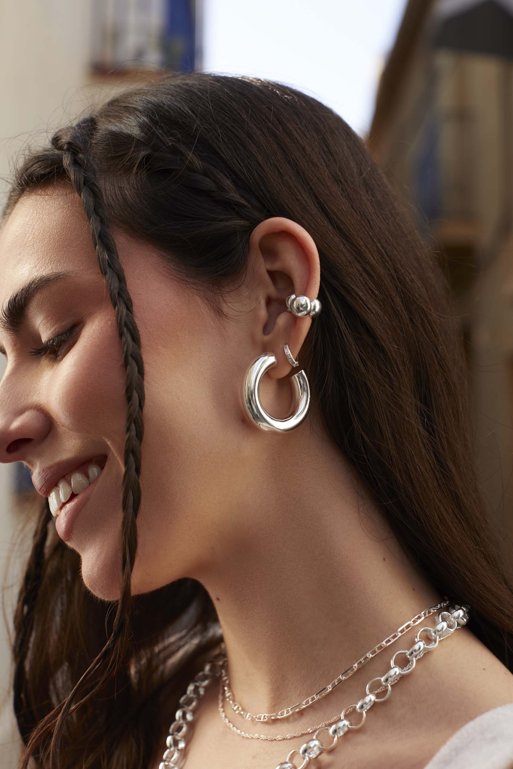 L'avantage de ce earcuff est qu'il se place facilement à mi-tour de l'oreille et ne nécessite pas de pression sur la pièce pour la maintenir en place ; Grâce à sa conception, elle s'adapte naturellement par gravité. C'est une option élégante et contemporaine pour ceux qui cherchent à ajouter une touche de style à leur look.