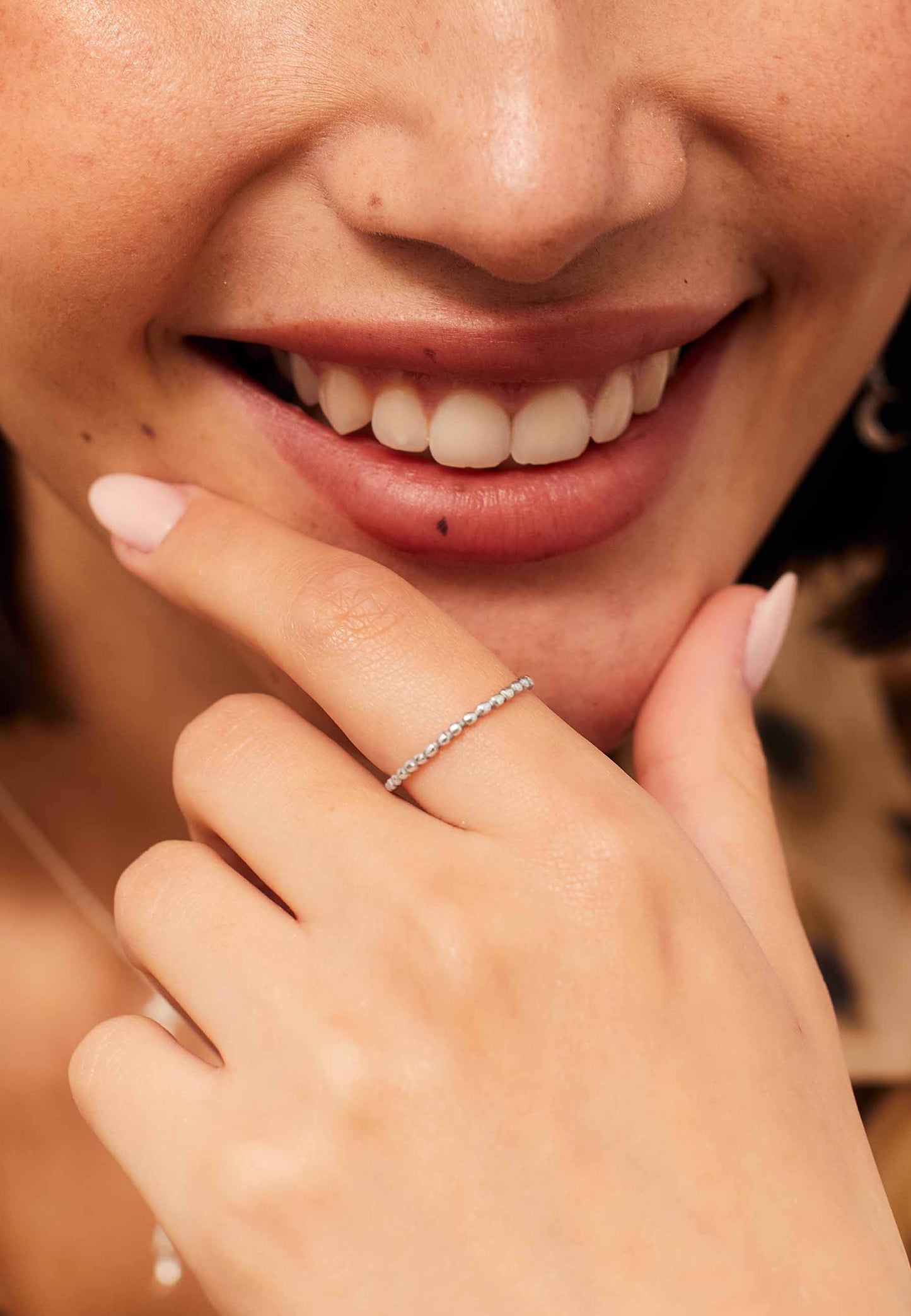 La bague INAY va très bien avec n'importe quelle autre bague. En plus, est également parfaite pour être portée seule. C'est un bijou très polyvalent !