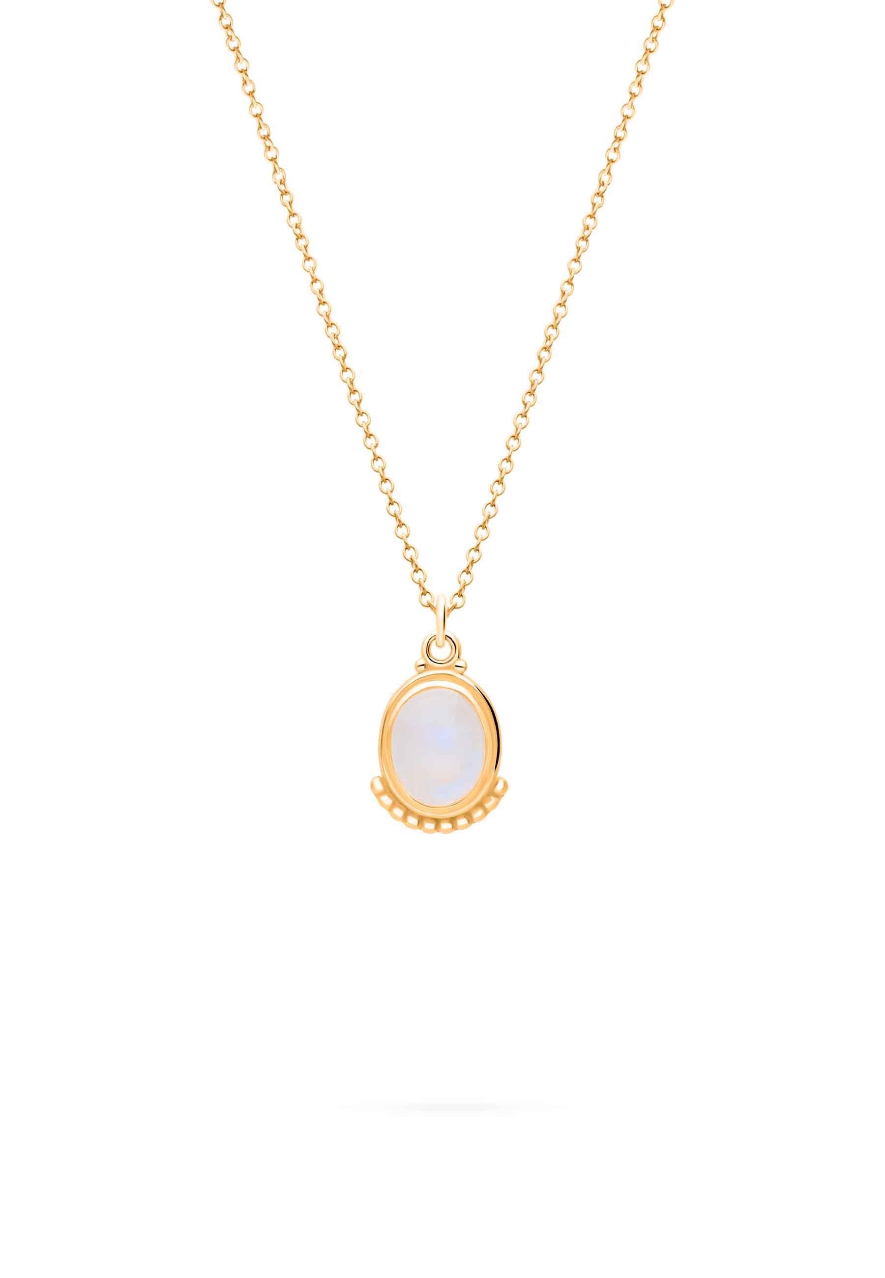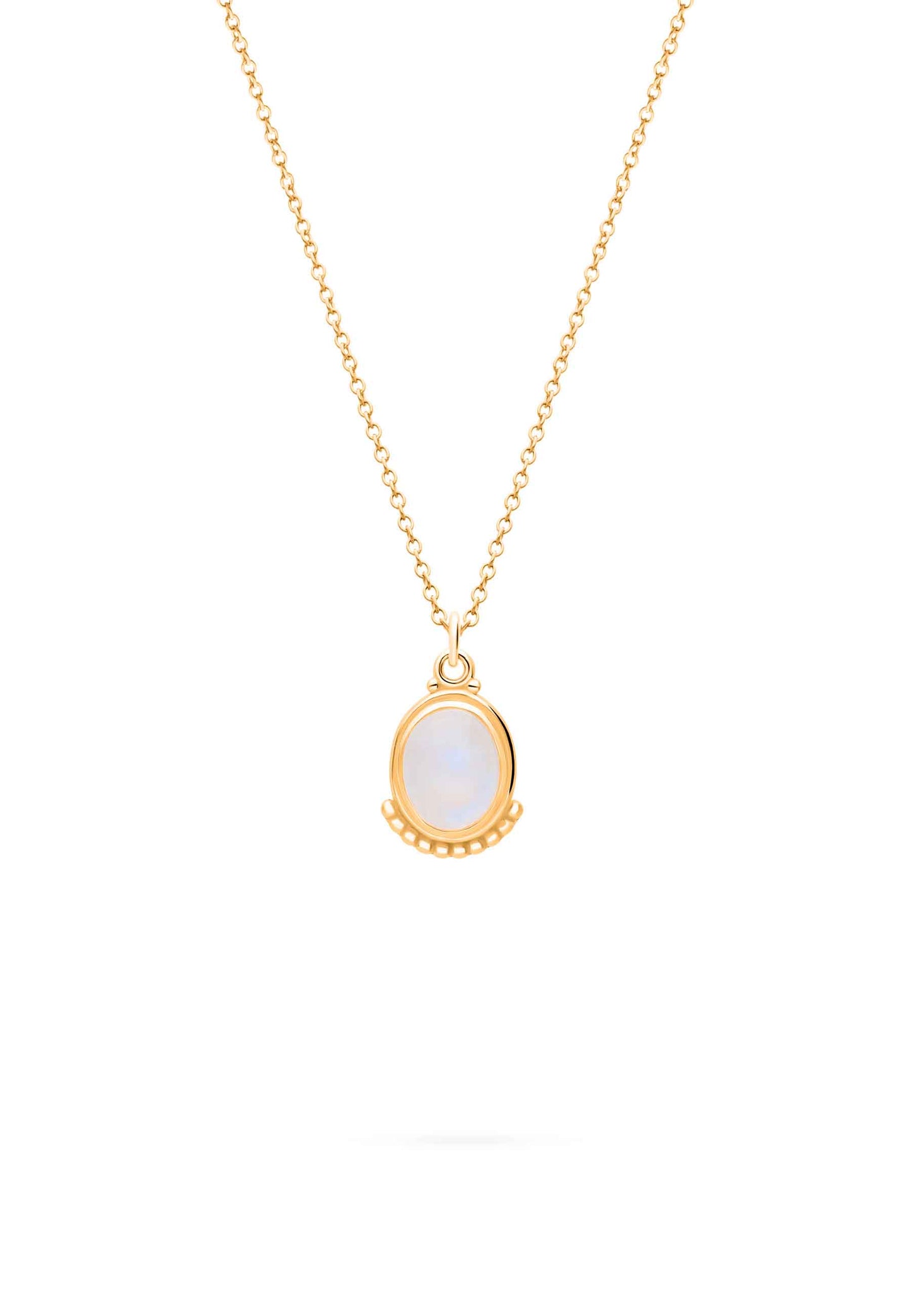 Le NITI OR met l'accent sur la précieuse pierre de lune, entourée d'une base et de petites perles dans le bas. La couleur intense de l'or est précieuse, tout comme le ton de la Pierre Naturelle.