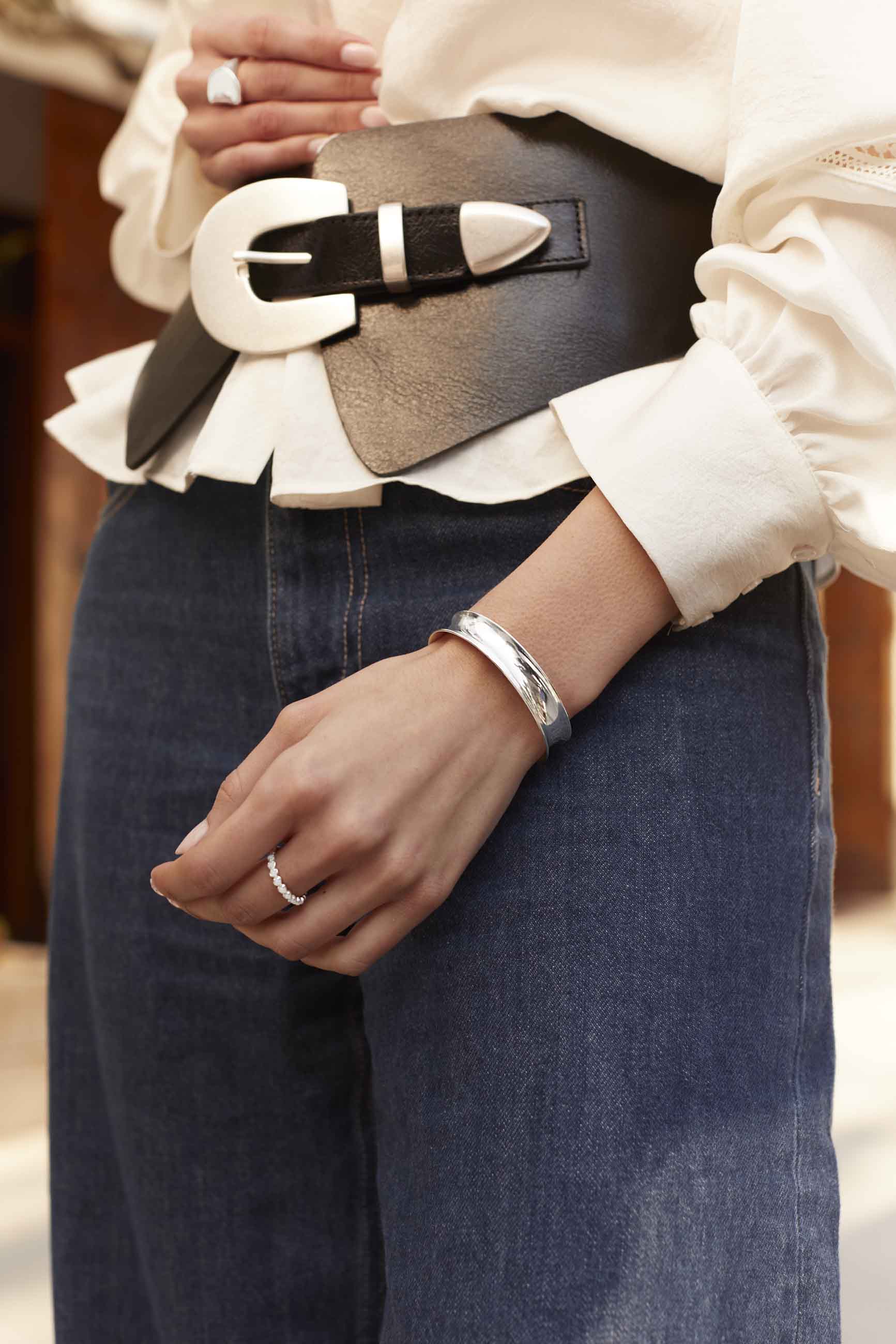 Notre jonc Samyama en plaqué argent de la collection Hathor, une pièce exquise qui allie l'élégance intemporelle à la force inspirante de la nature. Avec un design audacieux et robuste, ce bracelet capture l'essence de la déesse Hathor, personnifiant la célébration, l'amour et la liberté.