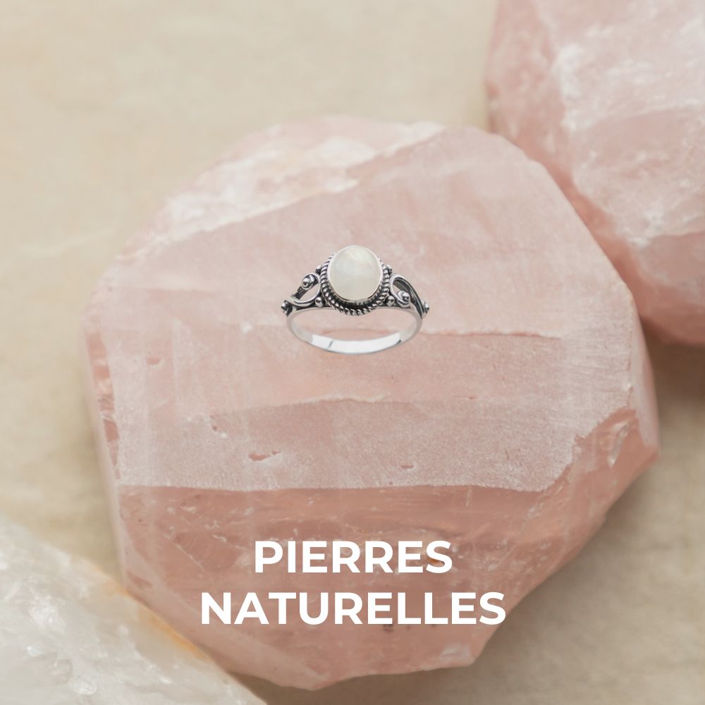 « Notre engagement est d'offrir des bijoux uniques, en utilisant des pierres naturelles chaque fois que le bijou le permet. Dans les caractéristiques de chaque produit, vous pourrez voir quelle pierre contient ce bijou. »