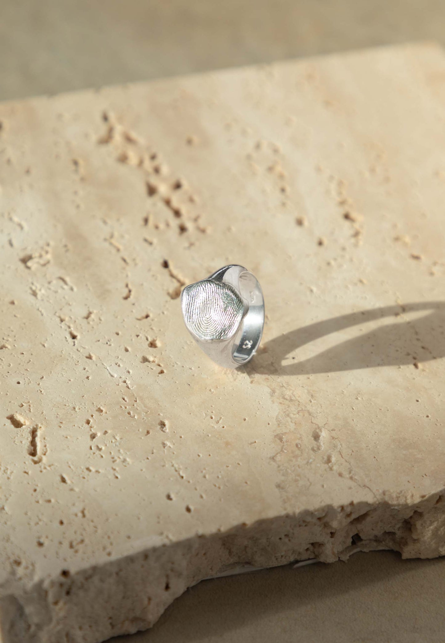 La bague Muhari est un bijou en argent massif 925 sur lequel vous pouvez graver votre propre empreinte ou celle de cette personne spéciale. Vous pouvez même graver deux empreintes sur le même moule.