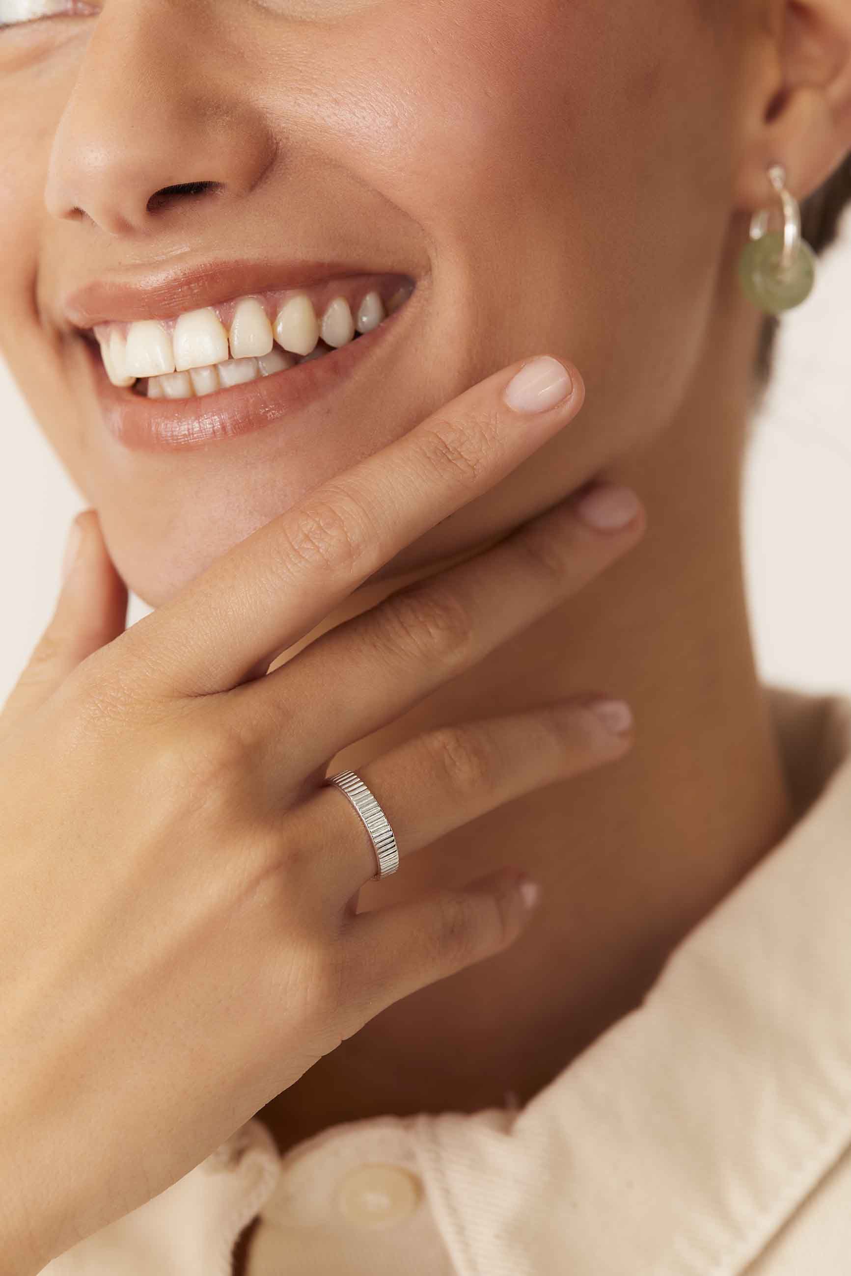 La KARMA se distingue par son effet rayé et uniforme, ce qui en fait une bague très originale et polyvalente. Vous pouvez facilement la combiner avec d'autres bijoux et créer de belles combinaisons !