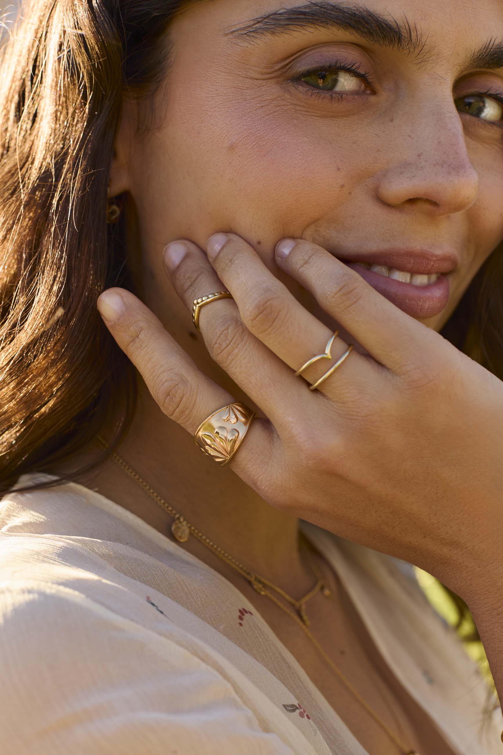 La bague Parul Or présente une largeur de 15 mm décorée d’un design floral qui apporte du volume et une touche Boho qui attirera tous les regards. Le relief des fleurs est sublimé par la brillance dorée, créant une pièce à la fois remarquable et élégante.