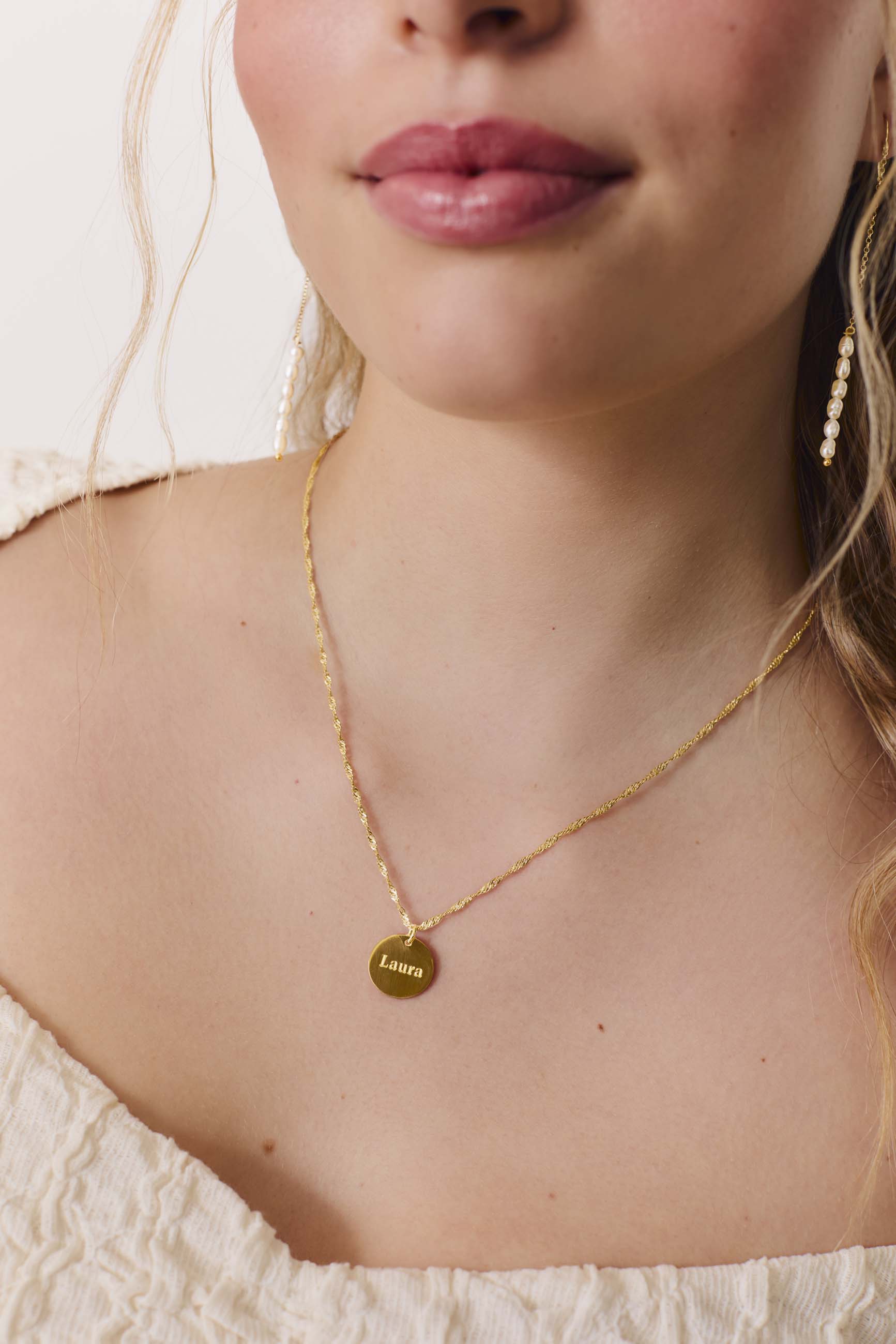 Ce collier est composé d'une chaîne de maillons de type singapour et d'une plaque où vous pouvez graver un mot à l'avant et à l'arrière. Écrivez le mot que vous voulez graver dans la section "texte", vous pouvez mettre des minuscules, des majuscules, des chiffres..... Le mot sera marqué exactement comme vous l'écrivez dans cette case!