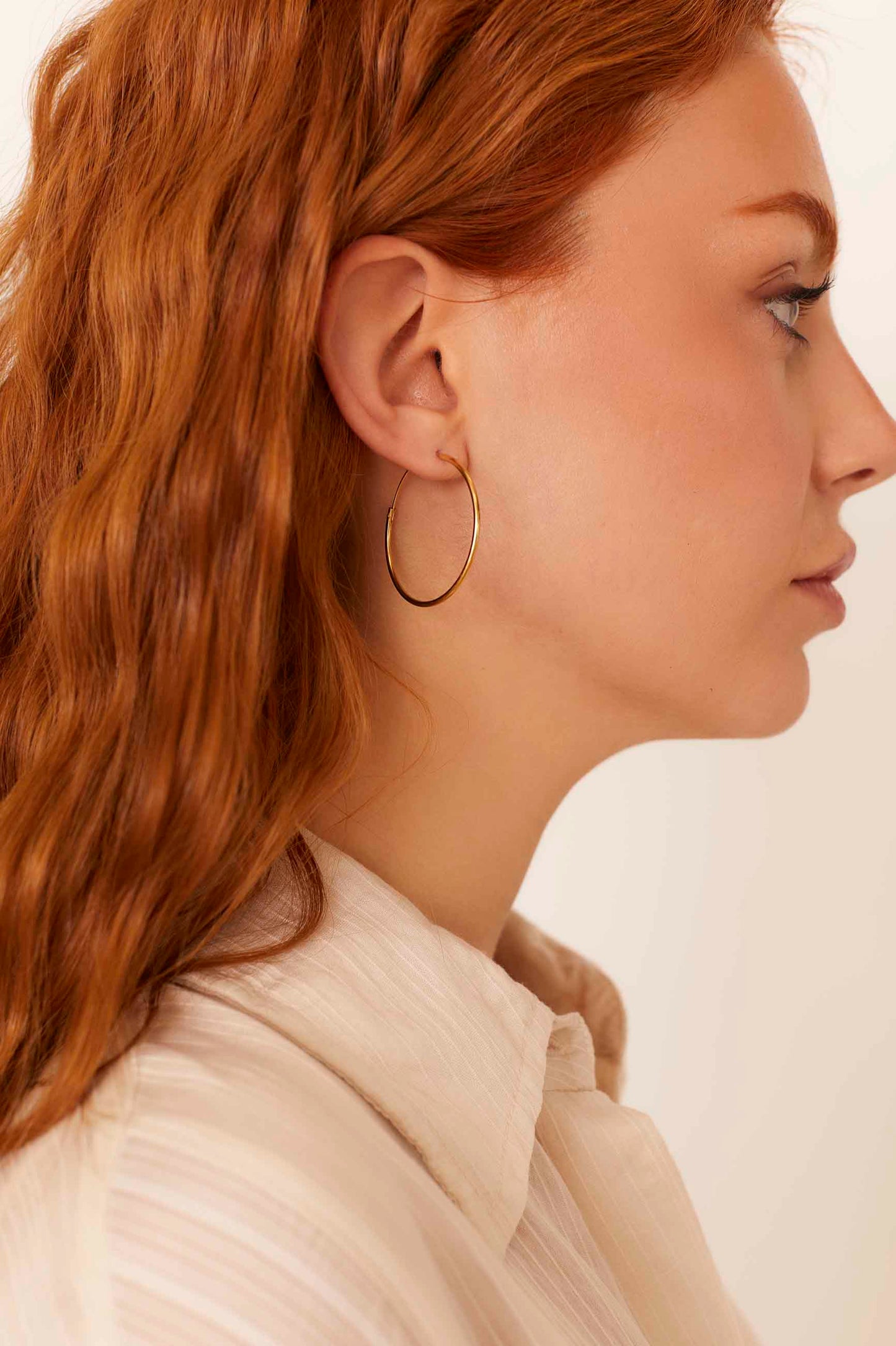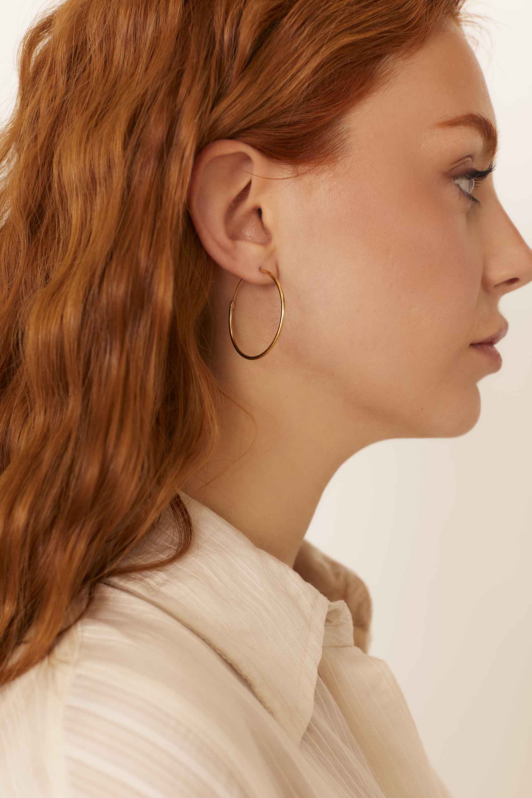 Les boucles d'oreilles JIVANA OR (30mm) sont des créoles lisses de taille grande. Elles se distinguent par leur confort, leur légèreté et leur dynamisme.