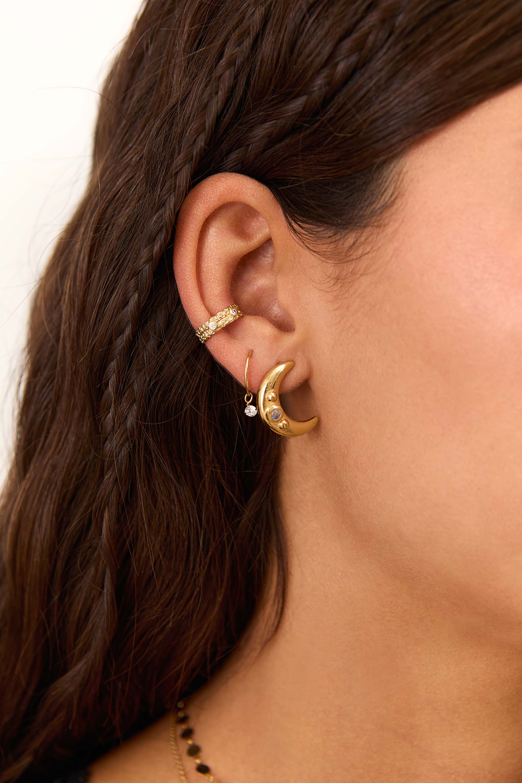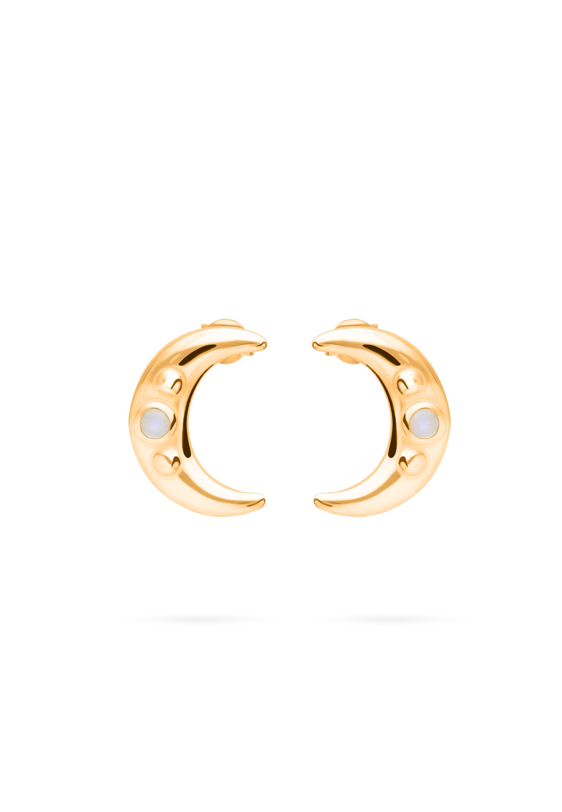 Ces boucles d'oreilles Maccam en argent sterling 925 et plaquées or. Elles se distinguent par leur design à maxi boutons, elles sont un symbole d'élégance et de style, parfaites pour se démarquer en toute occasion. Leur forme de lune en fait une pièce iconique pleine de personnalité, ajoutant une touche magique et sophistiquée à votre look.
