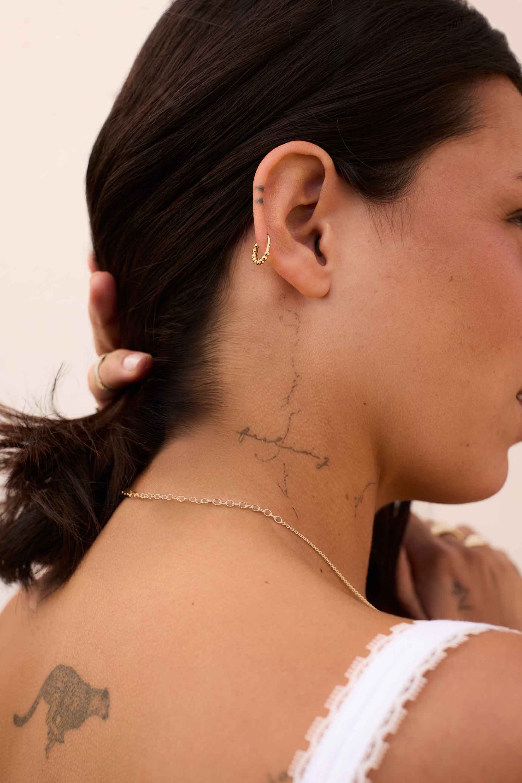 L' Helix plaqué or GAISEY est une créole avec beaucoup de caractère et de détails, idéale pour orner votre oreille avec style. Il est fabriqué en acier hypoallergénique et recouvert d'un placage or brillant. Il dispose d'une fermeture à clic confortable, d'une épaisseur de 1,2 mm et d'un diamètre intérieur de 8 mm, parfait pour l'hélice.
