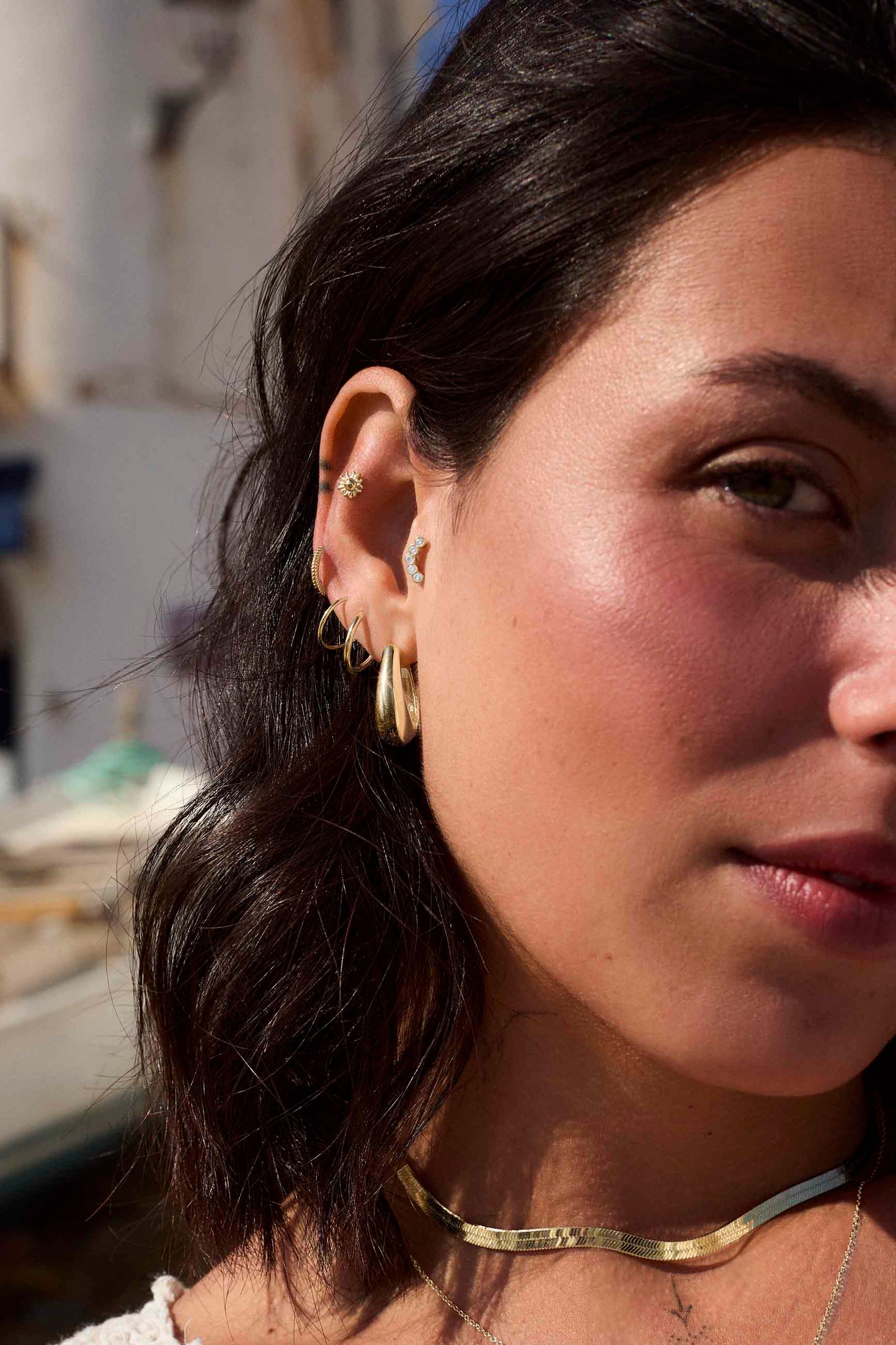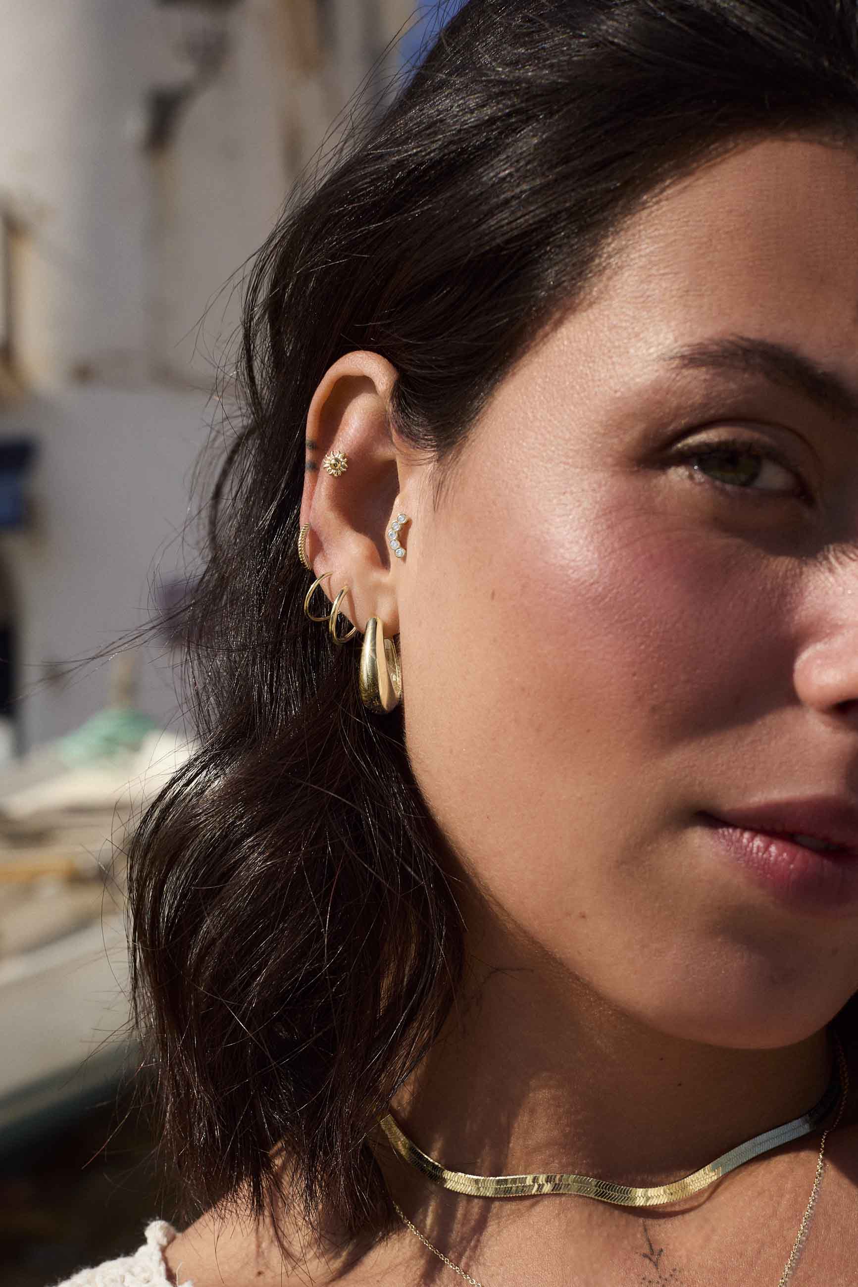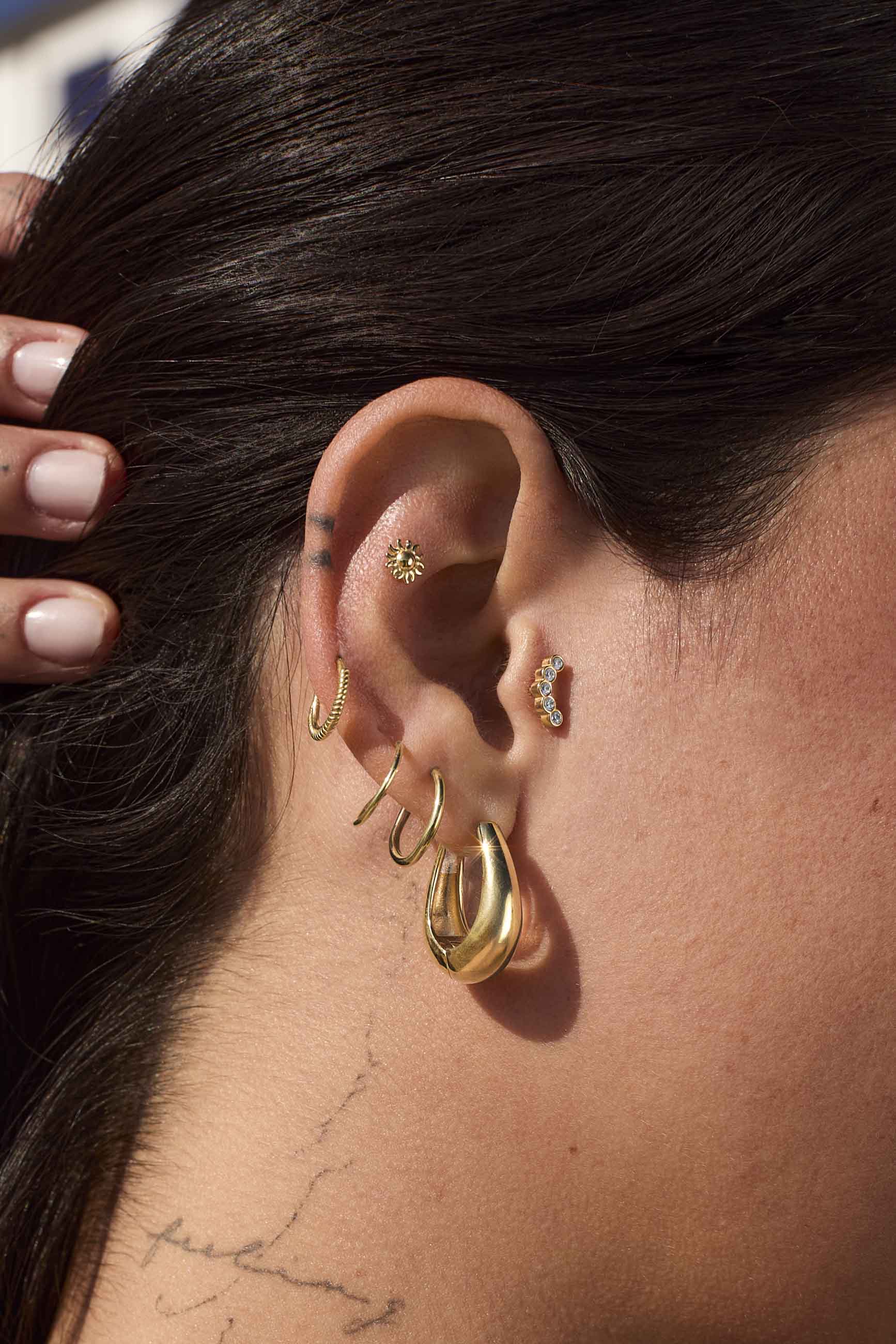 Parfait pour ceux qui veulent se démarquer avec style sans en faire trop, ce piercing se marie parfaitement avec d'autres pièces en or ou peut être porté seul comme point focal. Un bijou solaire pour vous accompagner dans votre quotidien.