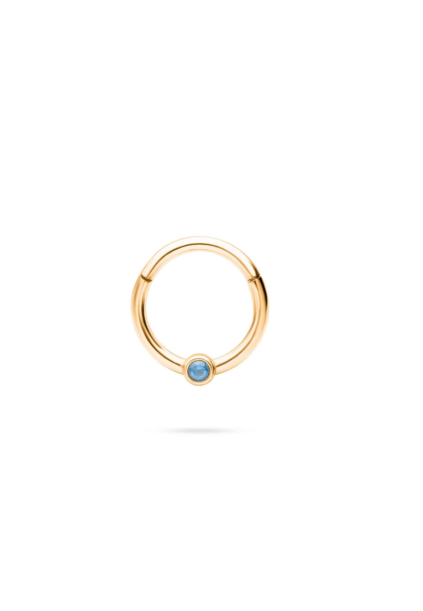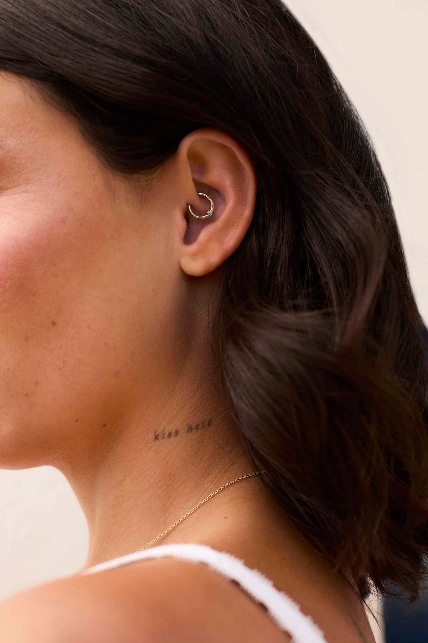Au centre du créole, une zircone bleue se détache, offrant un éclat délicat, en contraste avec l'or chaud du créole. Le résultat est une pièce simple mais puissante, parfaite pour ceux qui apprécient les petits détails.