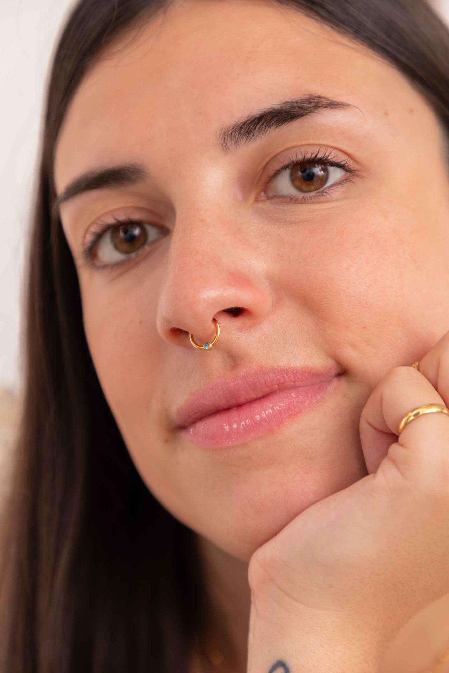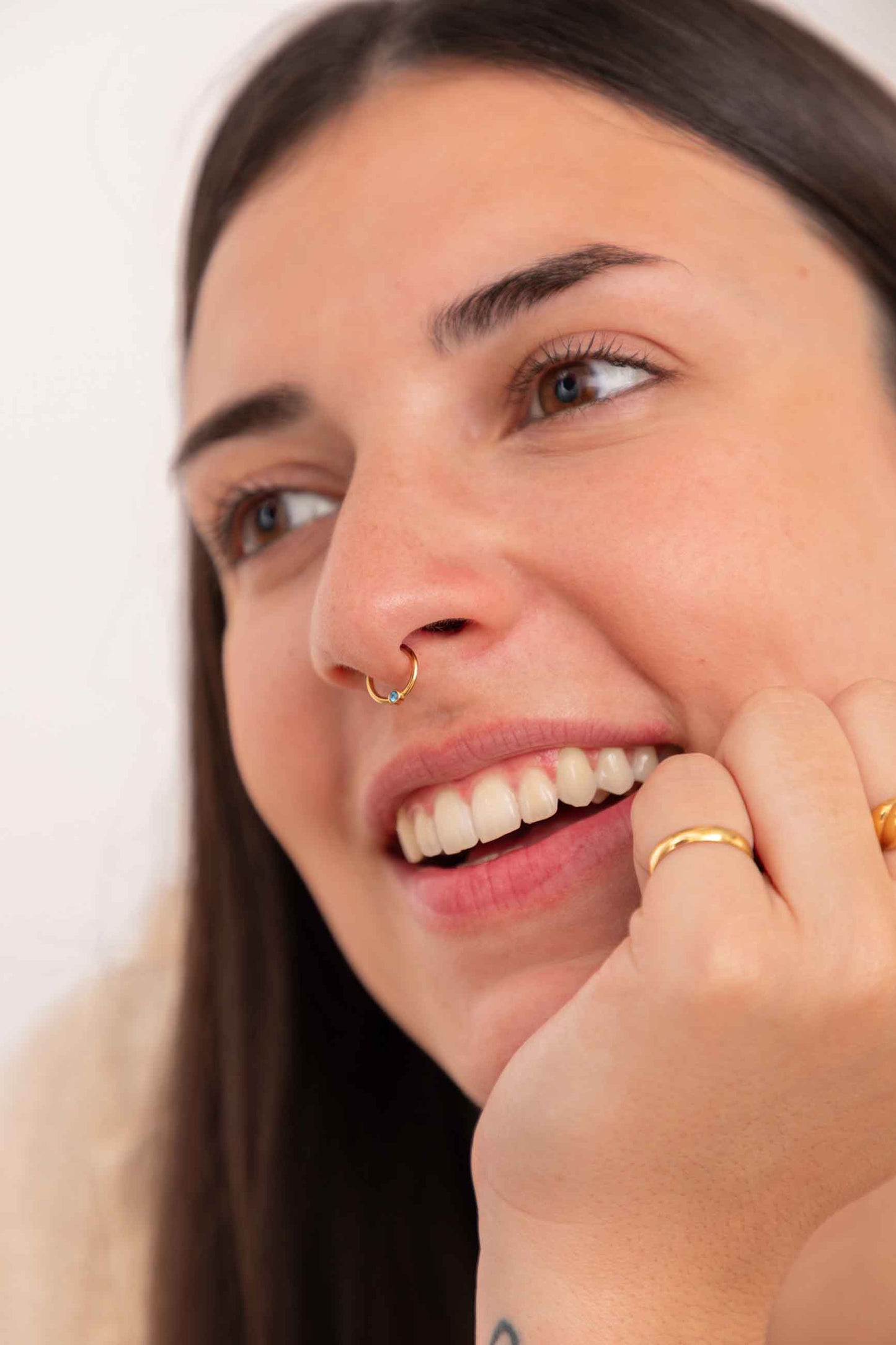 Le JIKRON plaqué or est un piercing septum, tragus, daith et hélix aux lignes épurées et sophistiquées. Fabriqué en acier hypoallergénique avec placage or , il possède une fermeture à clic, un diamètre intérieur de 8 mm et une épaisseur de 1,2 mm , s'adaptant confortablement et élégamment au piercing.