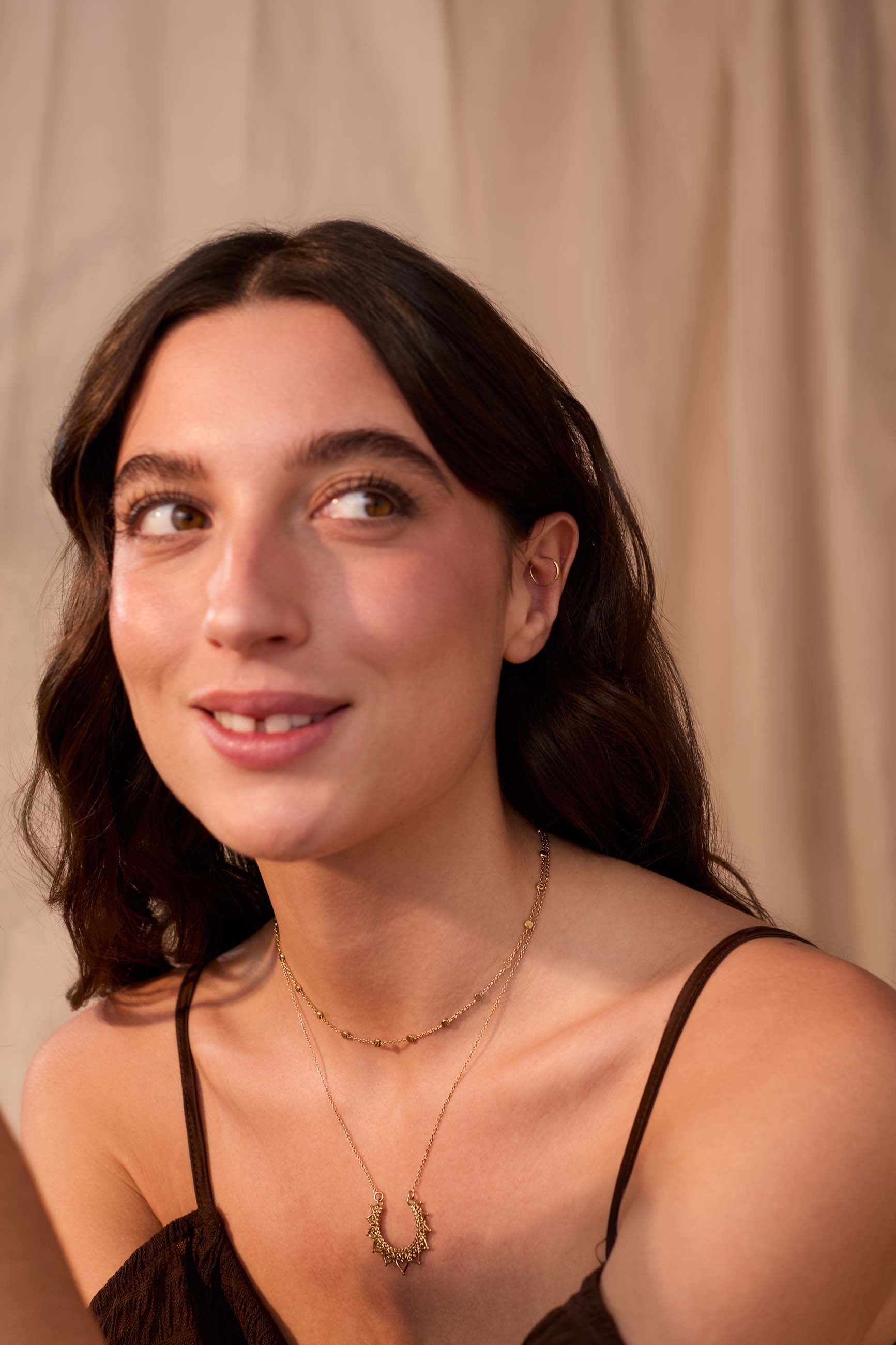 I JATIN sono dei piercings molto semplici in oro che staranno benissimo con la combinazione in oro. Li consigliamo al 100%.