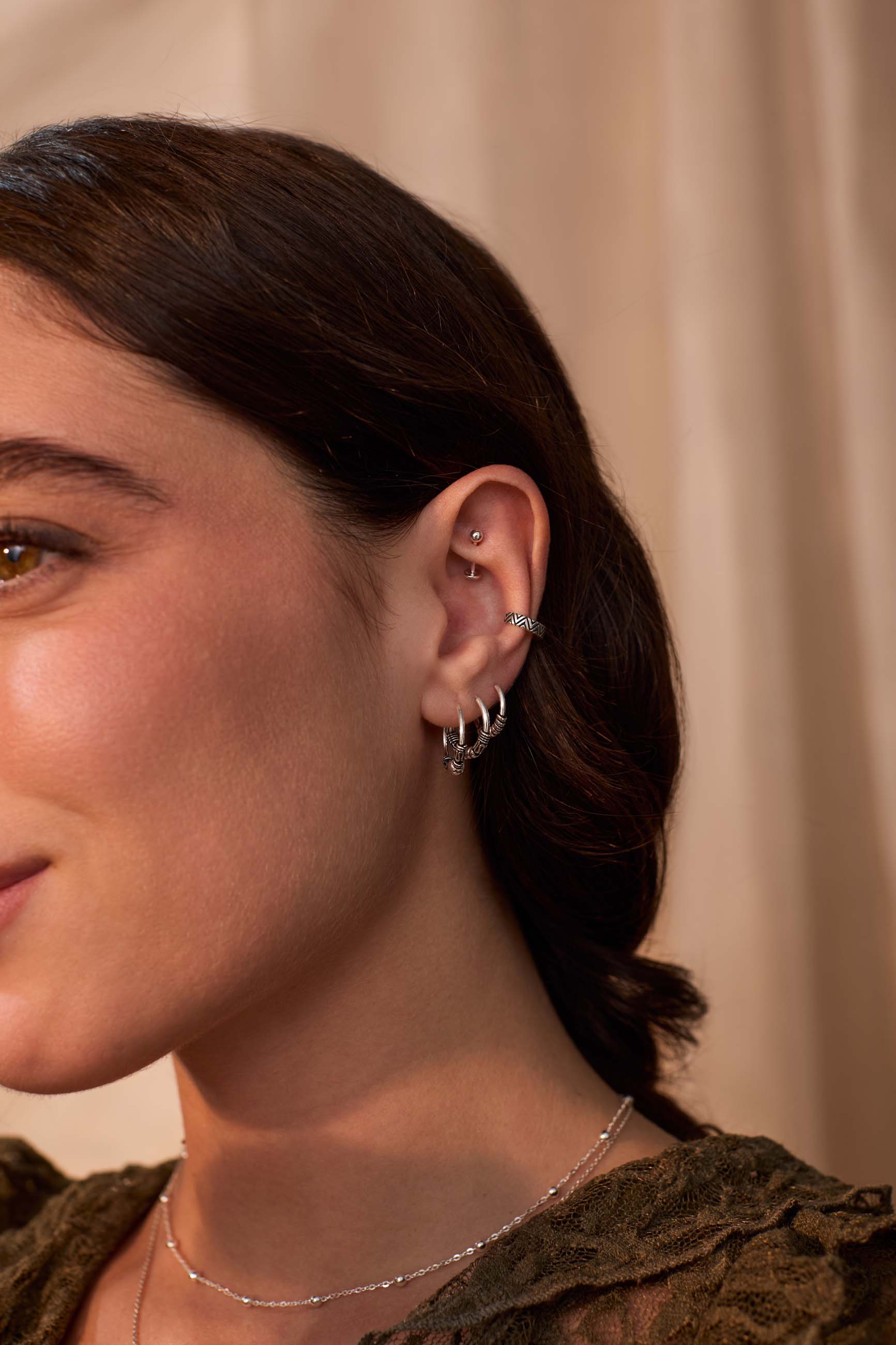 Il PACK ANIL è formato da tre orecchini a cerchio bali. Un'unità del KALA (16MM), una del JAYCE (14MM) e un'unità del MANAS (12MM).