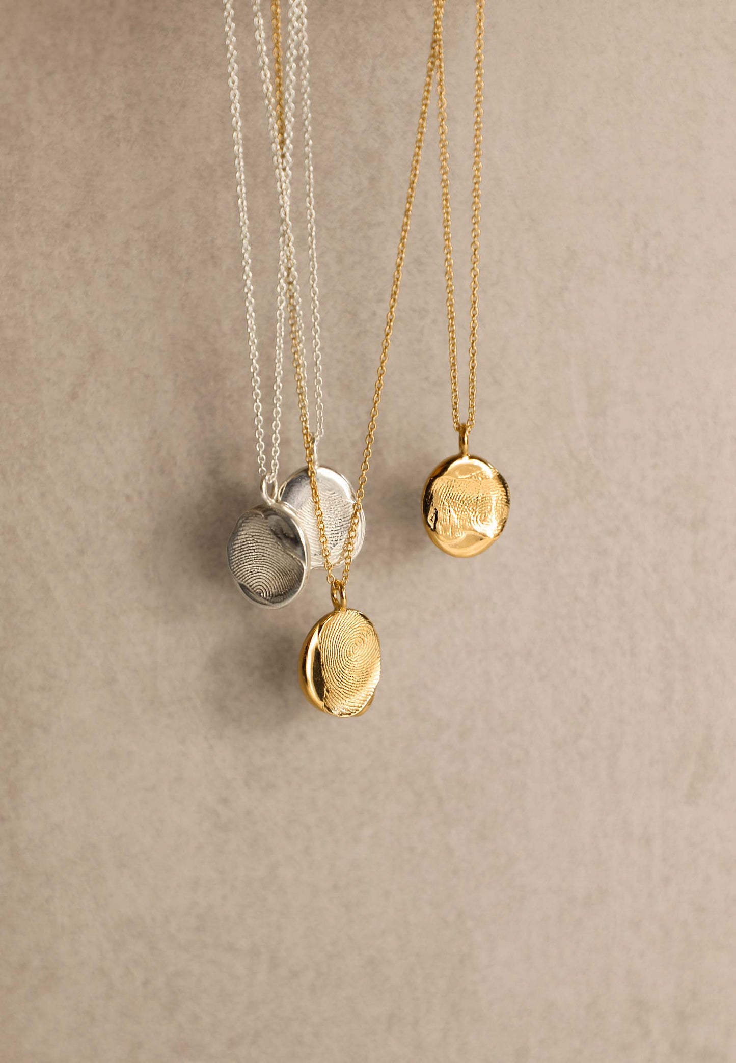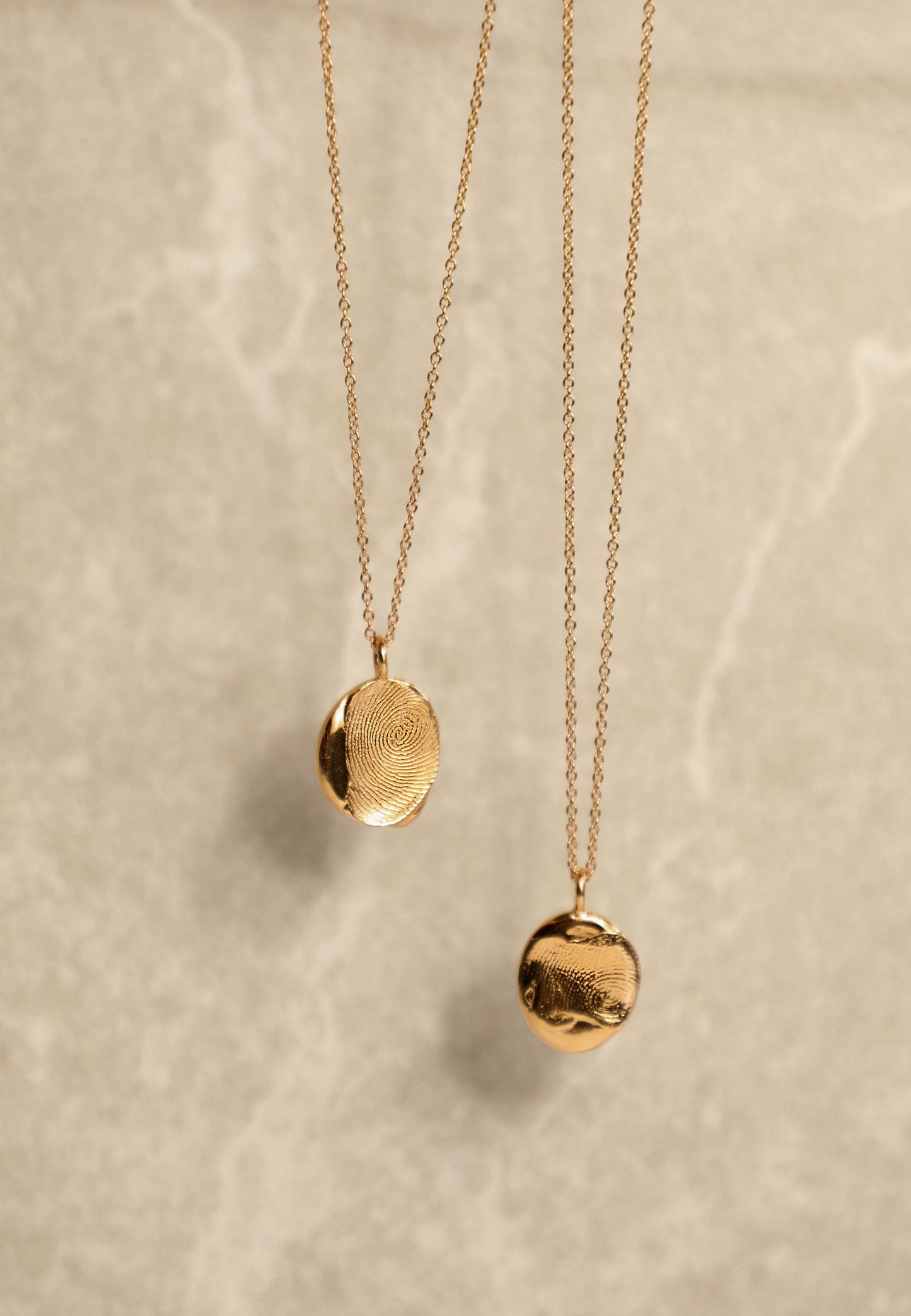 Su questa collana puoi incidere la tua impronta digitale, quella di una persona speciale o anche quella del tuo cucciolo. Puoi anche incidere un’impronta davanti e un’altra sul retro.