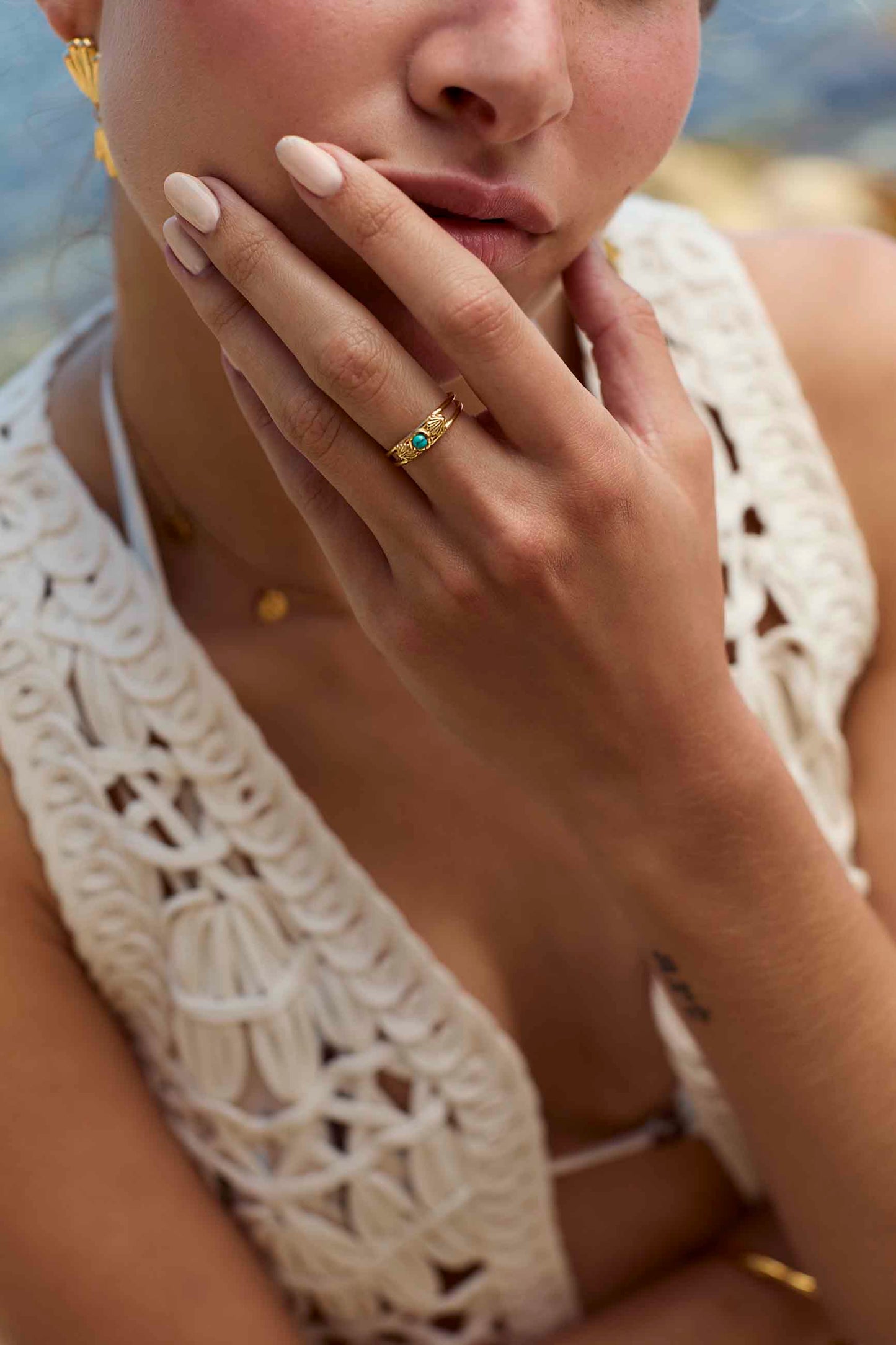 Anello KRASA in Argento 925 placcato oro con pietra turchese