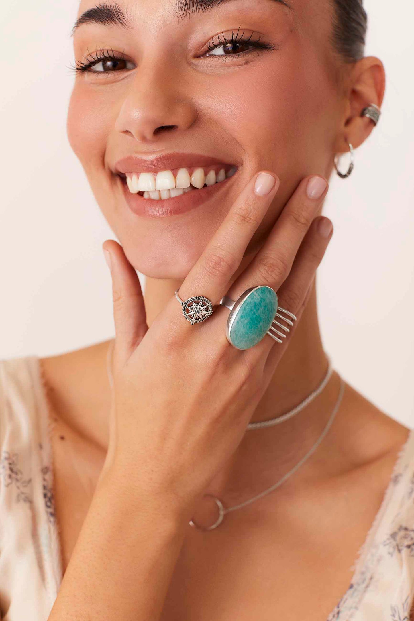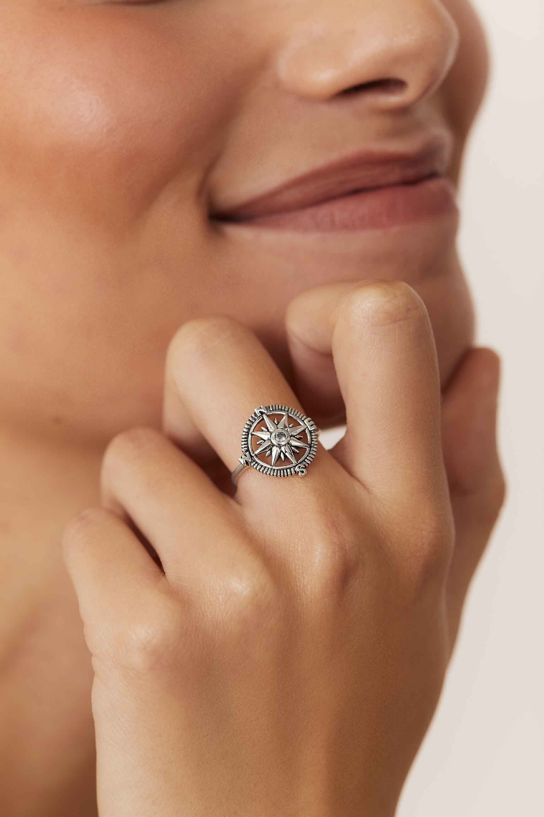 L'anello DAKSHIN si ispira a una bussola. È uno dei nostri anelli più originali e di maggior successo. È realizzato in Argento Sterling 925 e il suo design non lascerà indifferente nessuno.