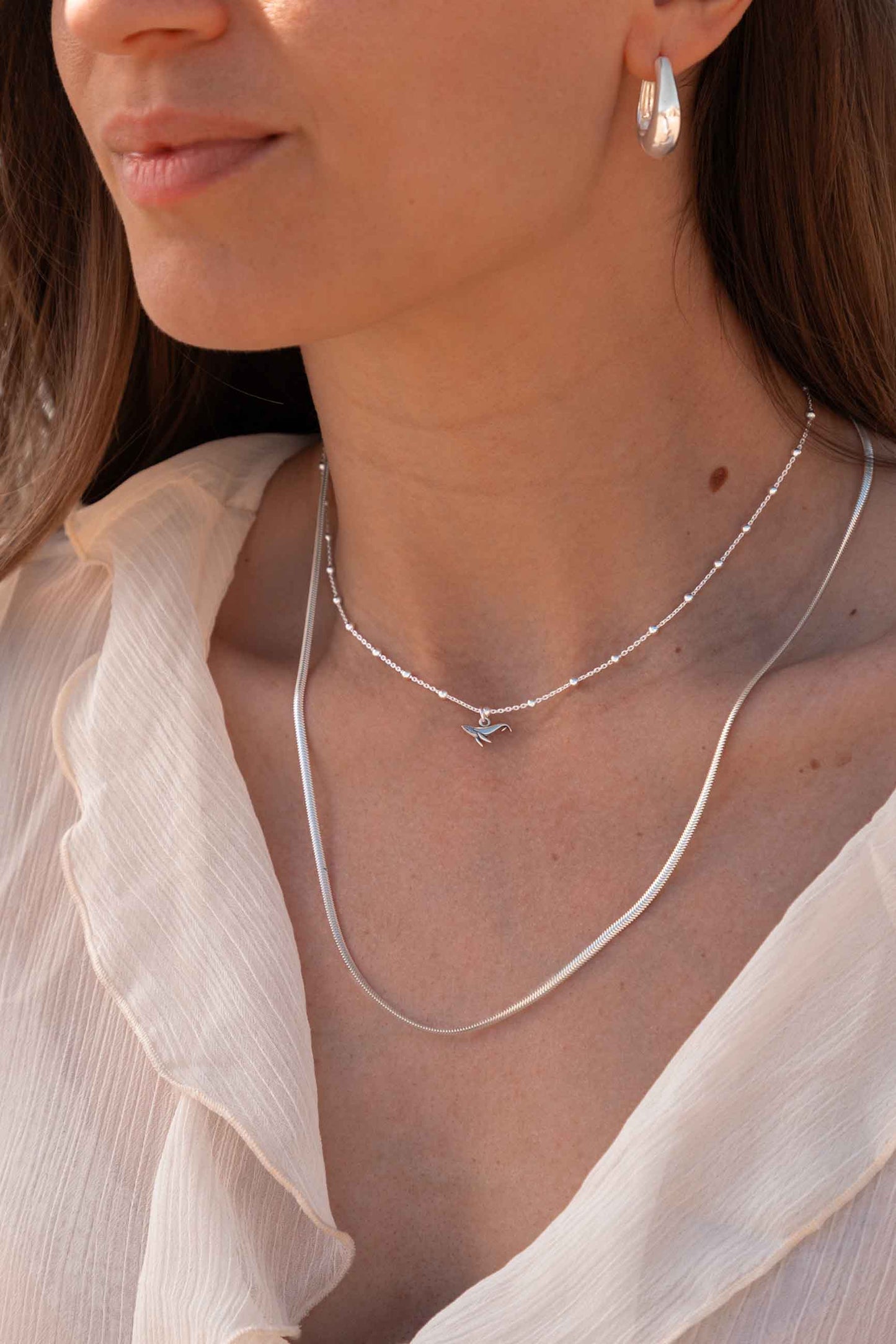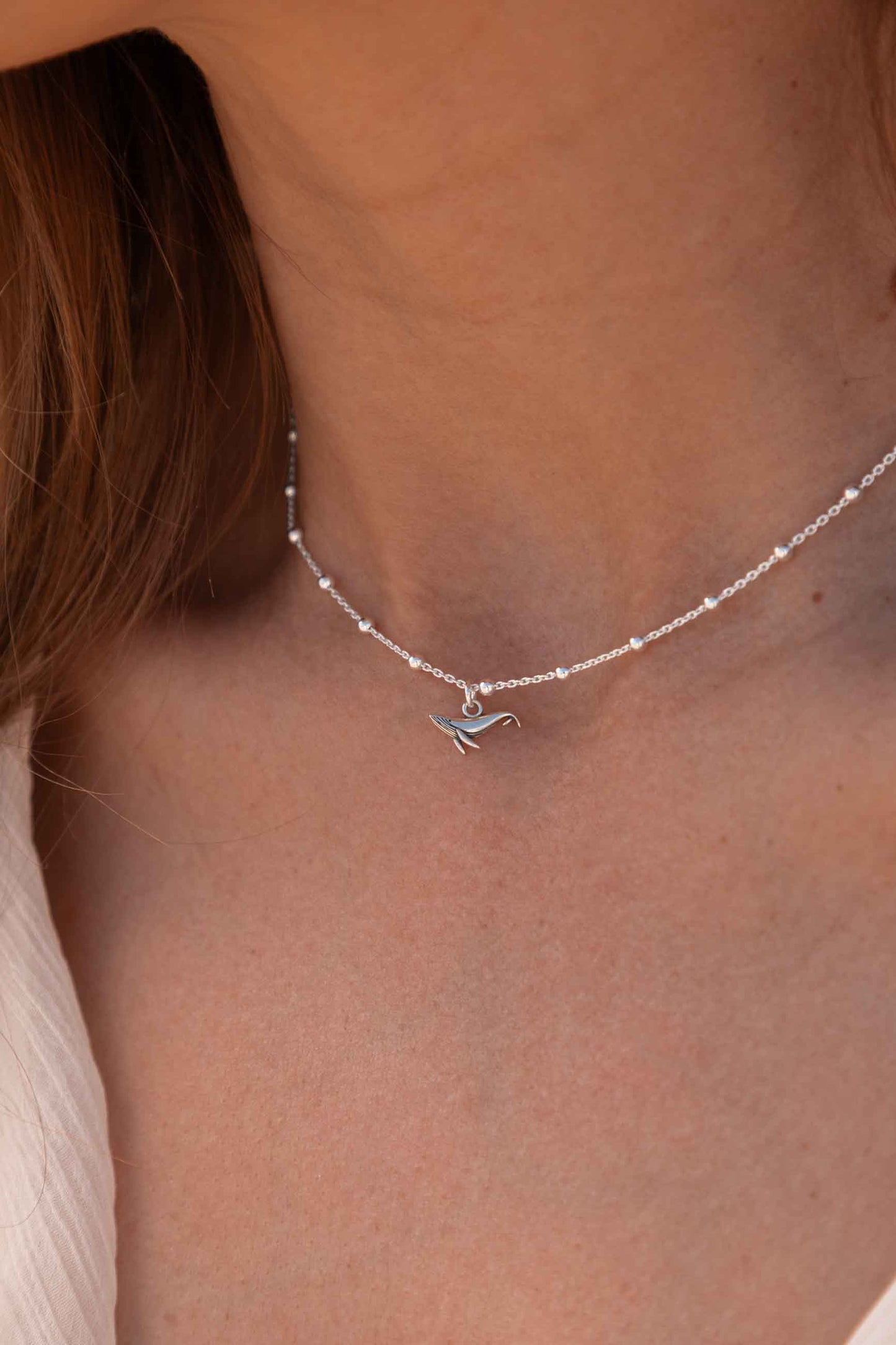 Immergiti nella potenza dell'oceano con questa delicata e significativa collana in argento sterling 925 . La catena con perline intervallate gli conferisce un tocco speciale e moderno, mentre il ciondolo a forma di balena simboleggia saggezza, libertà e connessione con la natura.