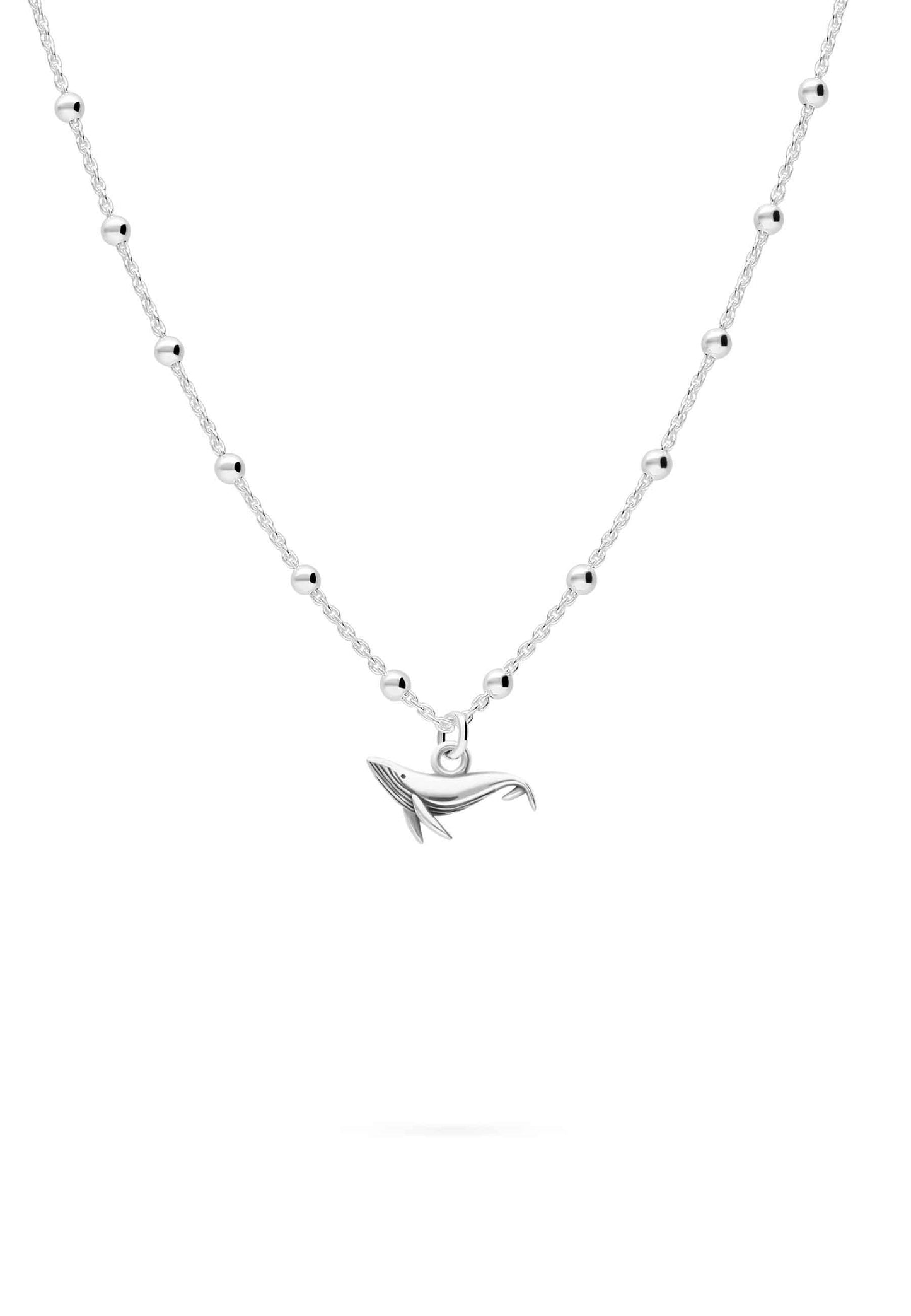 Collana in argento sterling con palline e ciondolo a forma di balena
