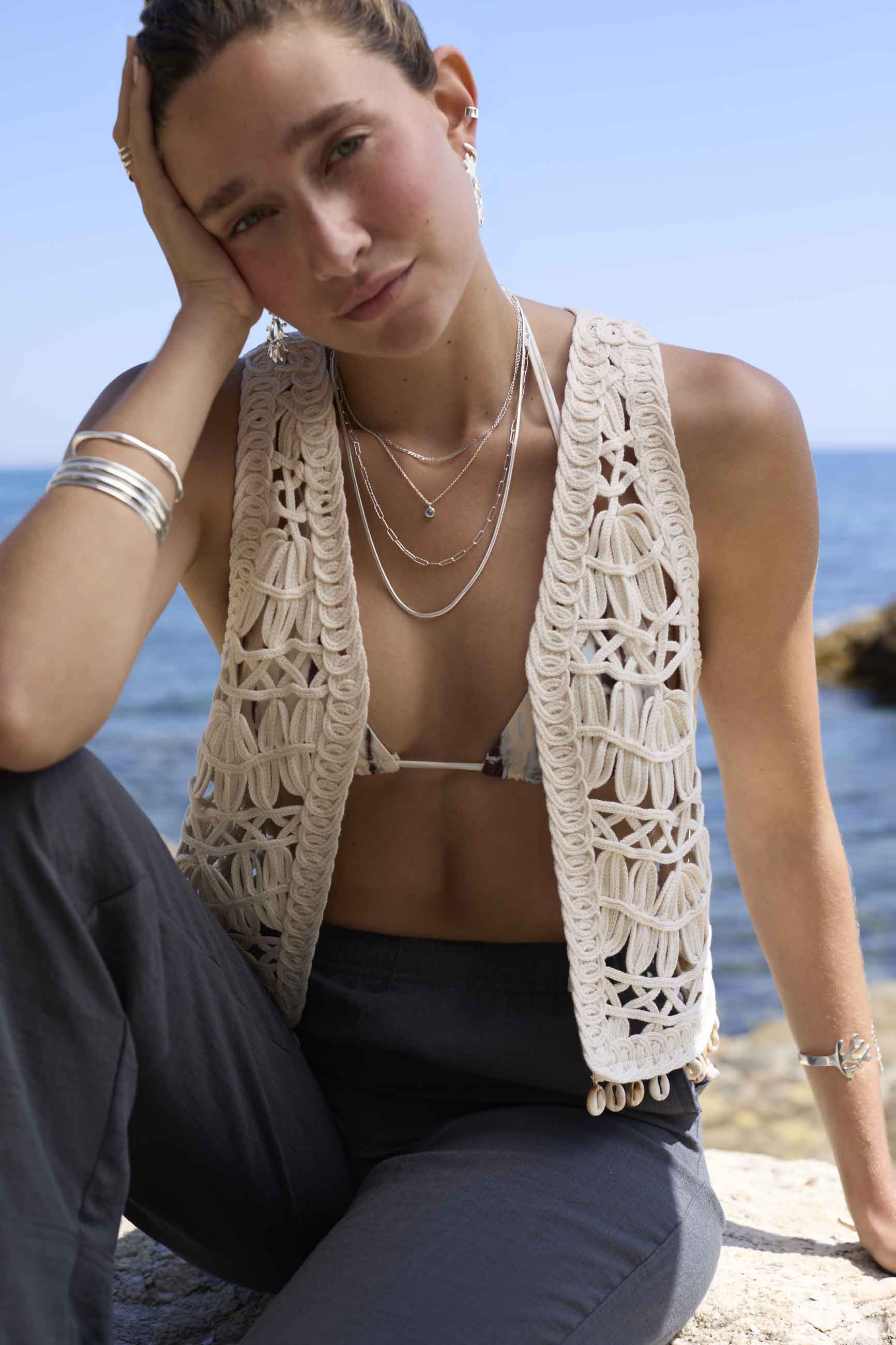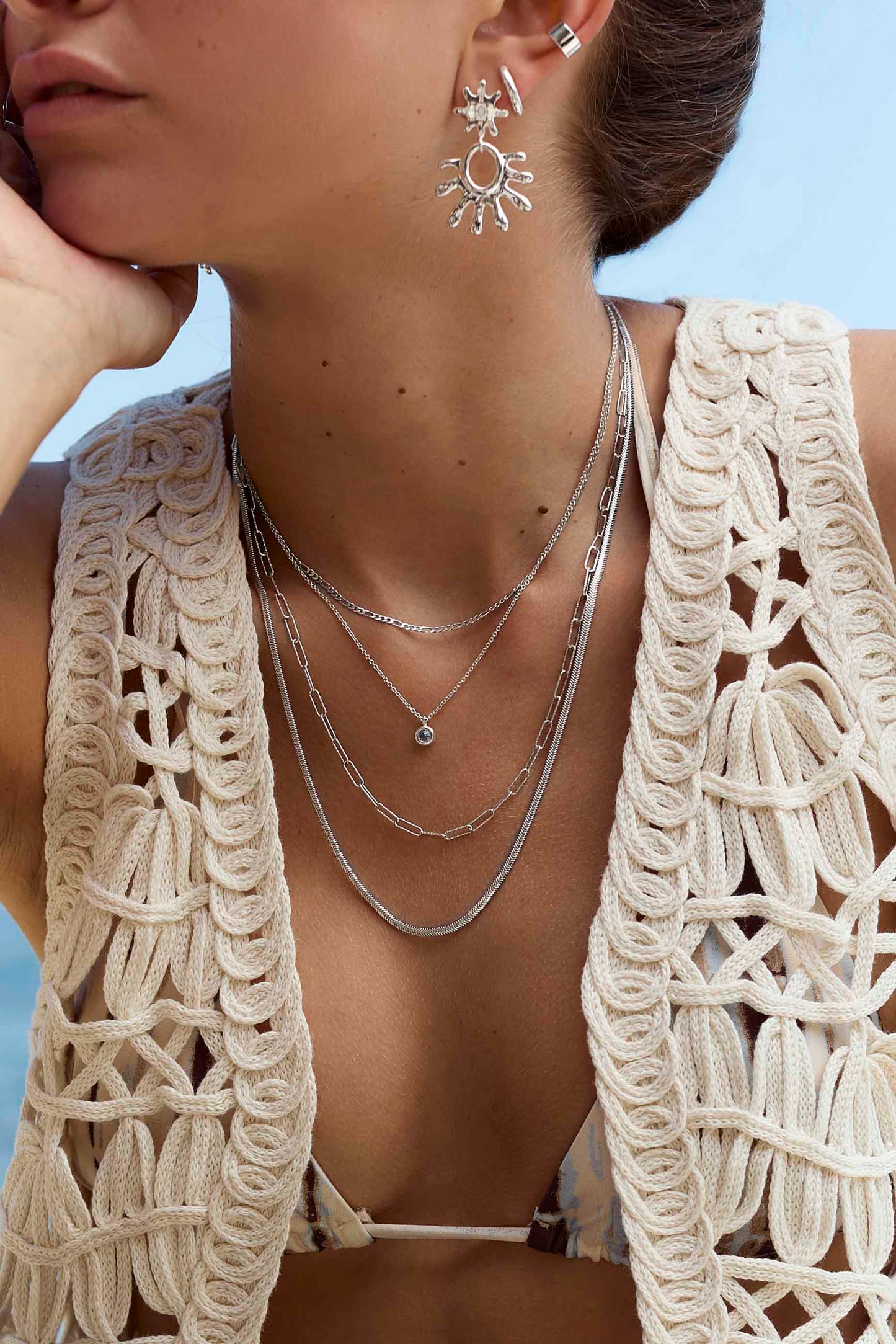 Questo gioiello sta benissimo con choker o collane più corte. Abbinala alla collana BAHUT per aggiungere un tocco di luminosità ai tuoi look.