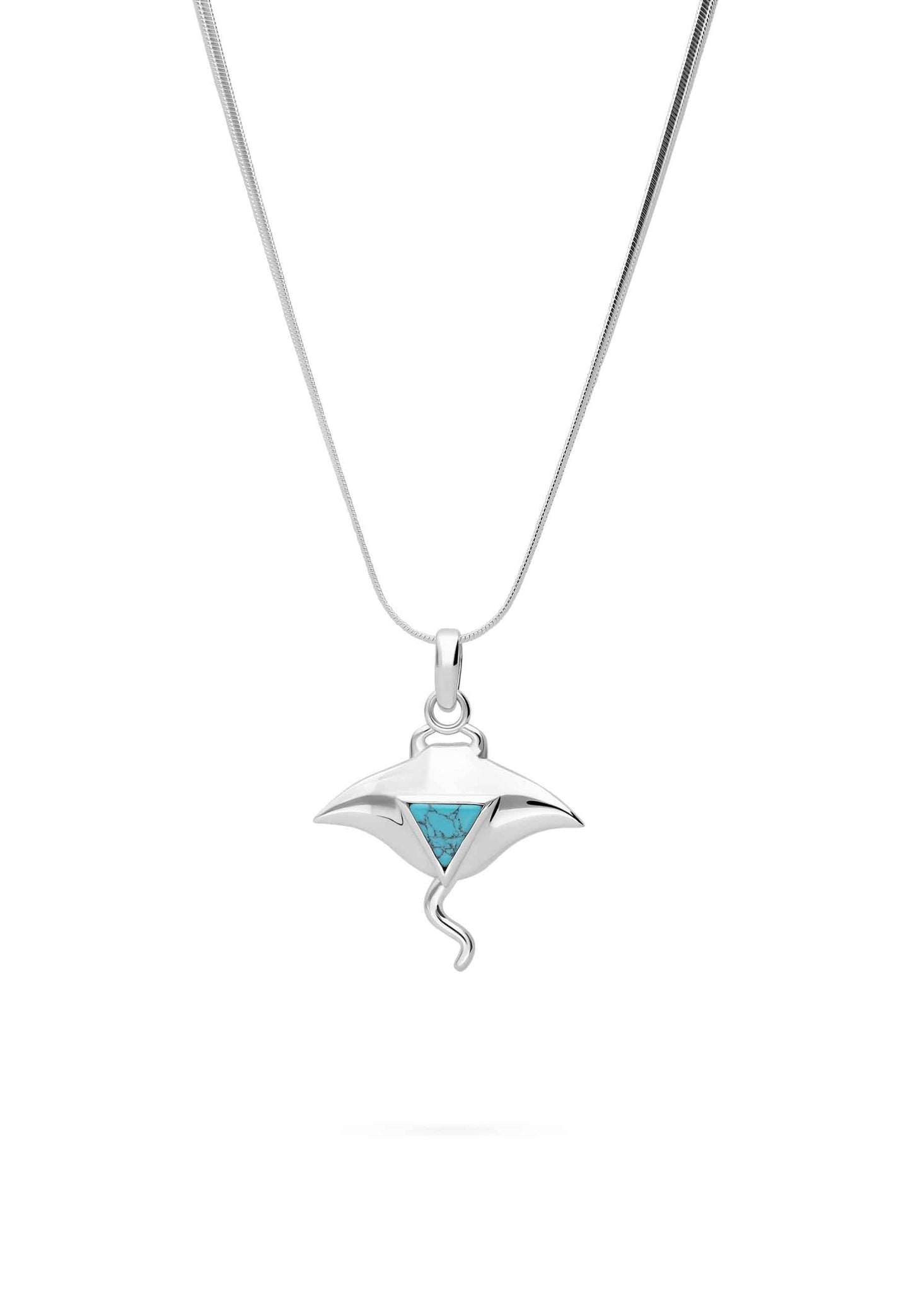 La collana MACHALE è un gioiello fuori dal comune. Realizzata in argento 925 e prodotta in Spagna, si distingue per il suo design a forma di manta, un animale marino raramente rappresentato nella gioielleria, che le conferisce un carattere unico.