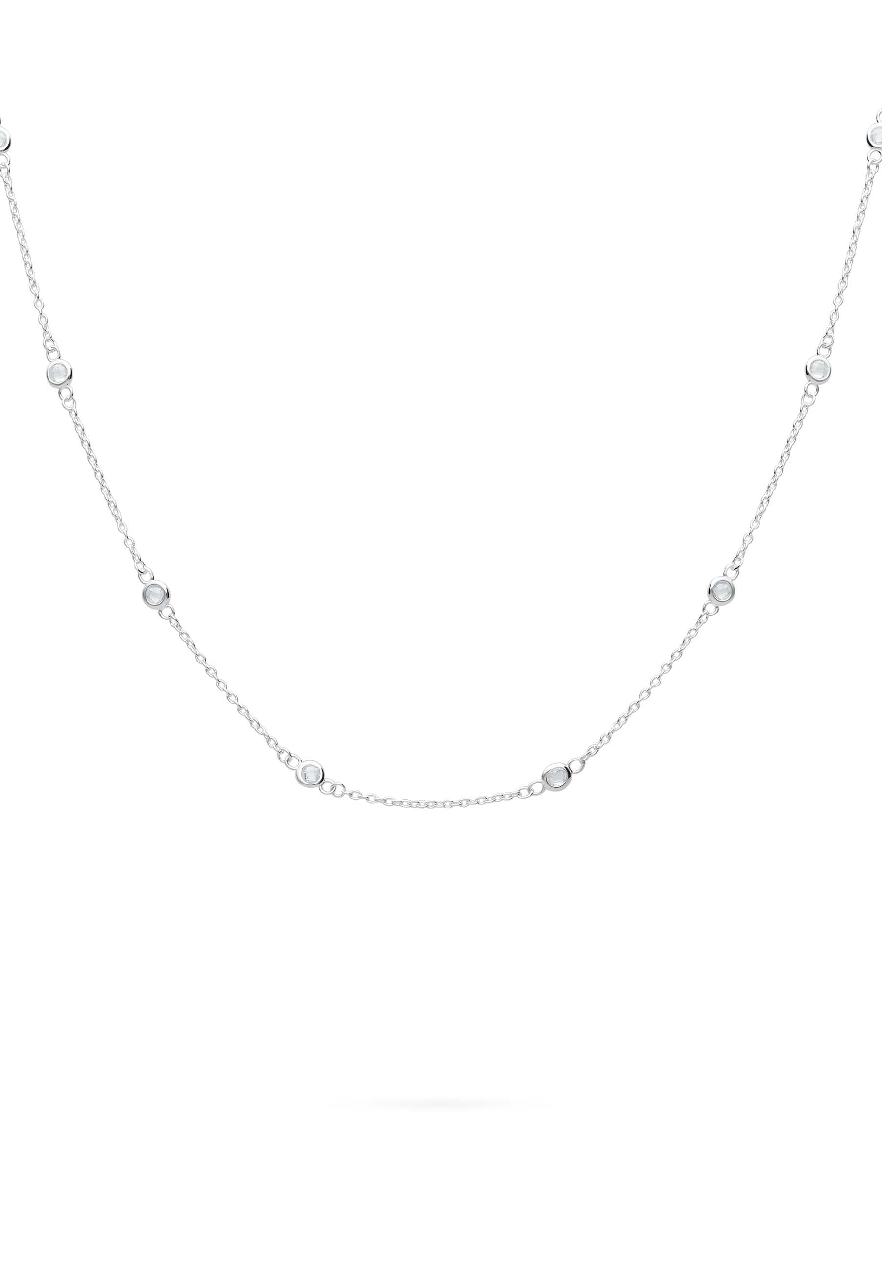 La collana SAAT è un girocollo in Argento Sterling 925, super raffinata ed elegante. È formata da Sette Zirconi piccoli di 3mm di diametro, con una separazione di 2,2cm tra uno e l'altro.