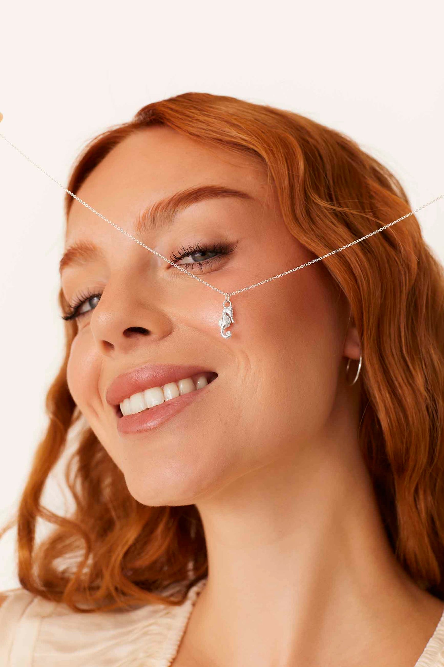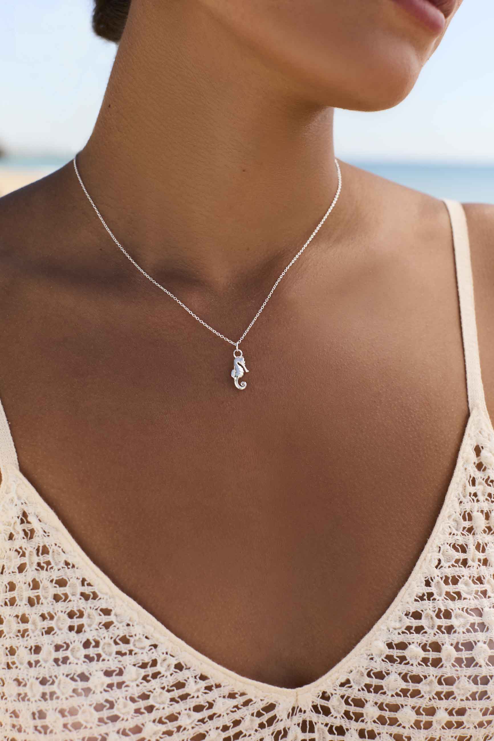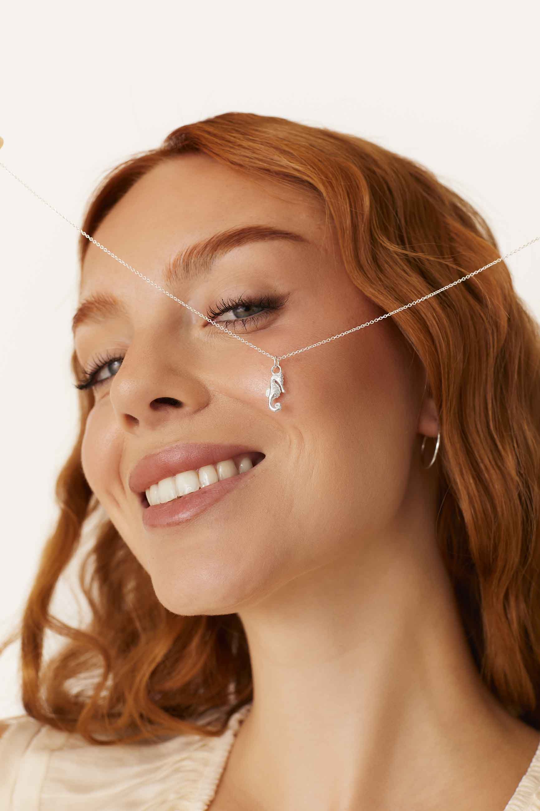 La collana SLOKA è un girocollo in Argento 925 composto da una catenina sottile e un ciondolo a forma di cavalluccio marino.