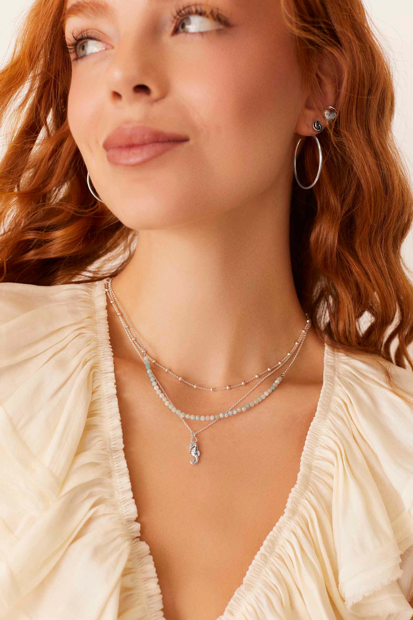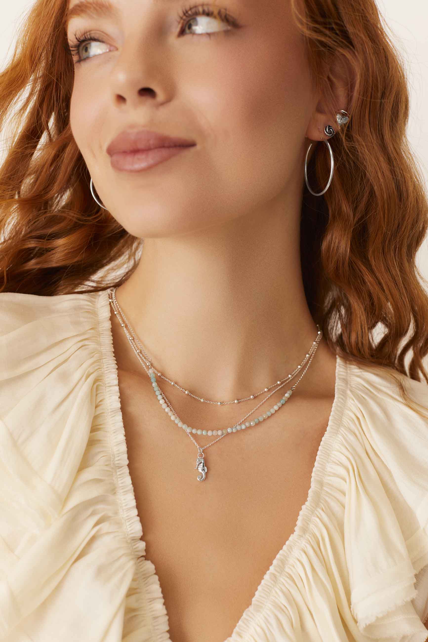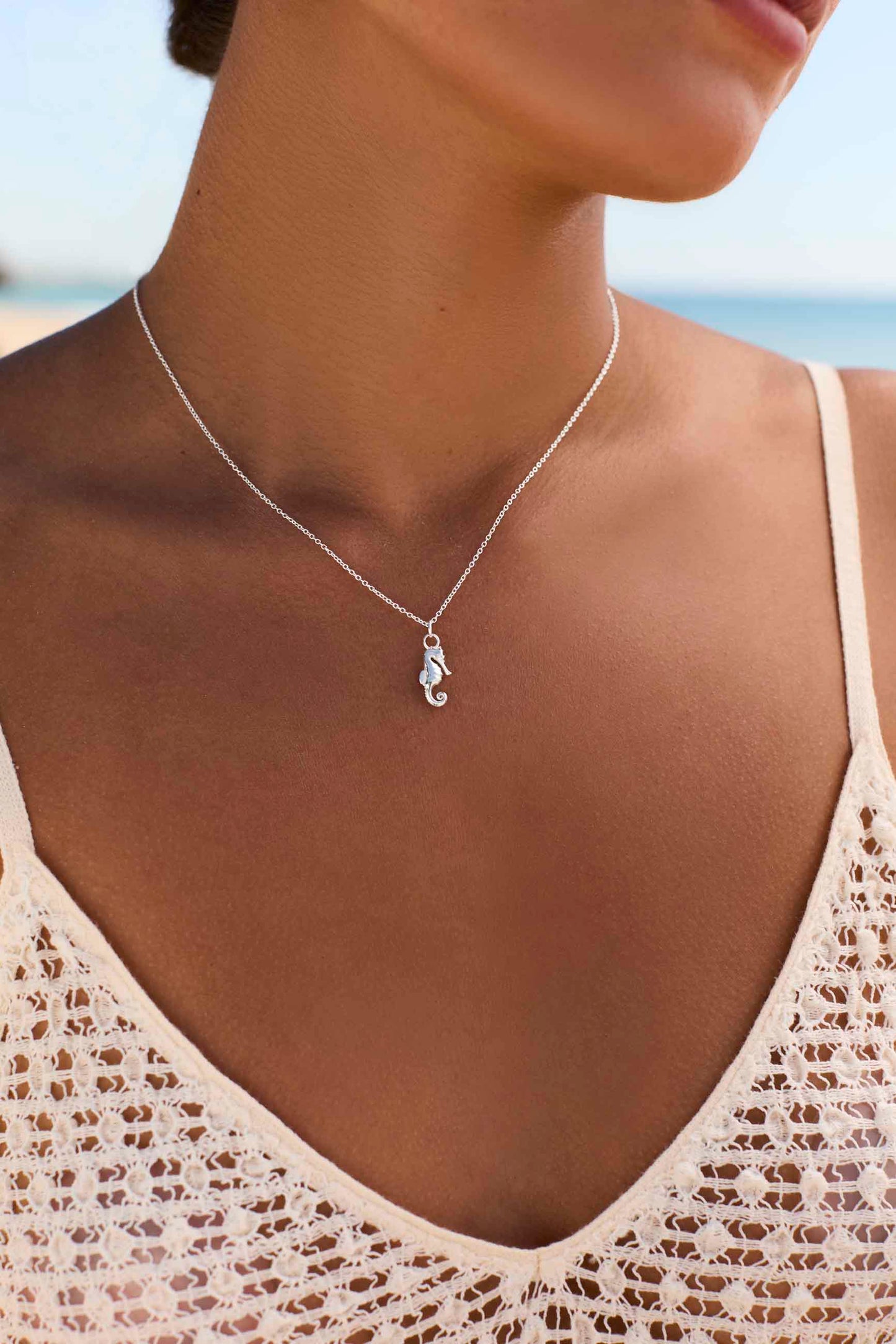 La collana SLOKA è un girocollo in Argento 925 composto da una catenina sottile e un ciondolo a forma di cavalluccio marino.