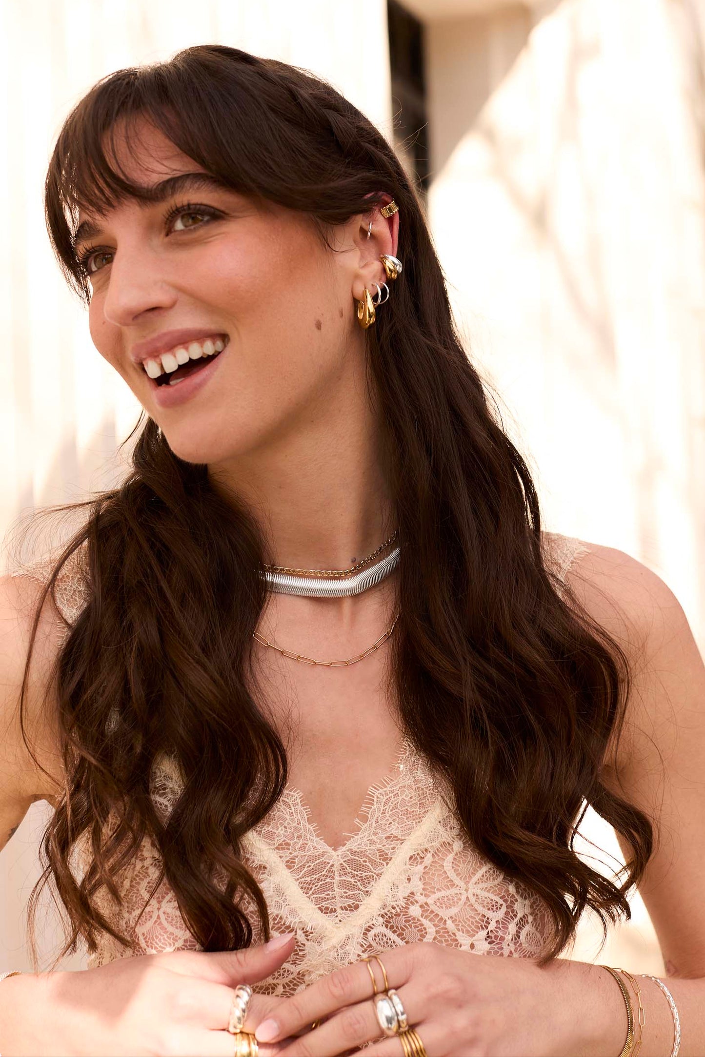 Indossalo da solo per un look minimalista e d'effetto, oppure abbinalo ad altri orecchini se ti piace osare di più. L'orecchino AYATAN non delude mai!