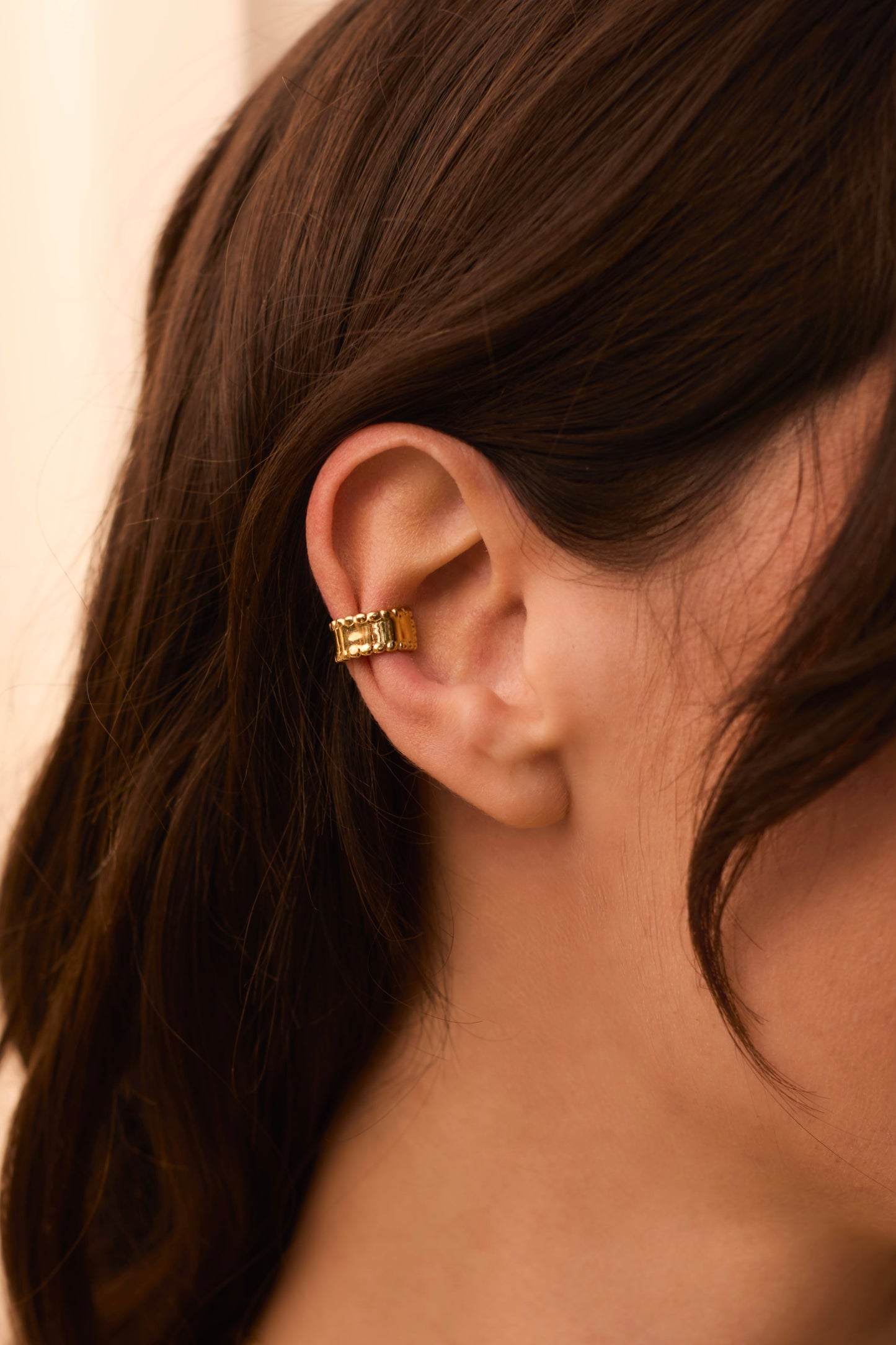 L’ear cuff BABAL Gold è realizzato in argento 925 placcato oro e ha un diametro di 9,5 mm. Il design aperto consente di indossarlo senza fori, adattandosi facilmente all’orecchio e garantendo comodità per tutto il giorno.