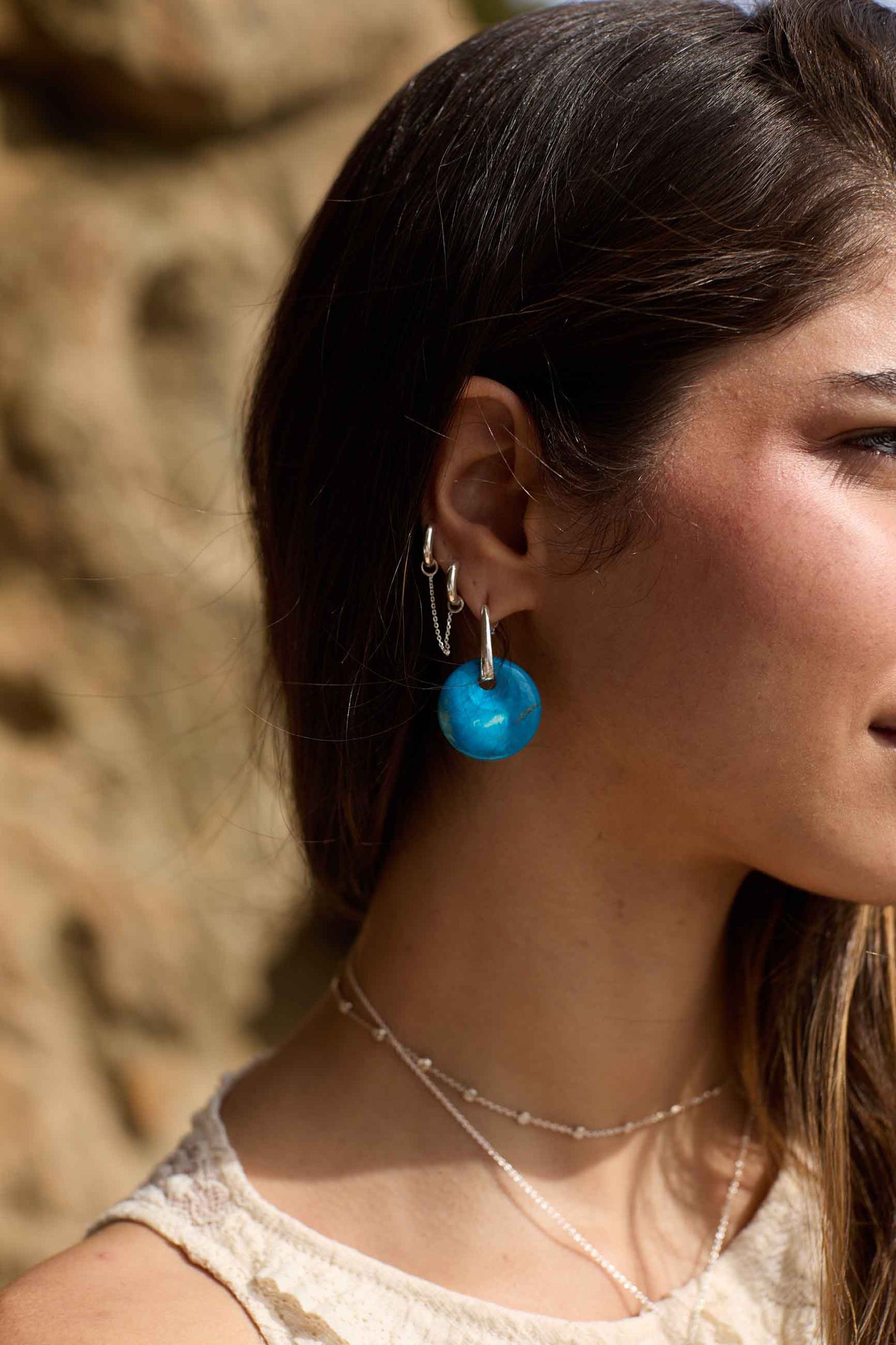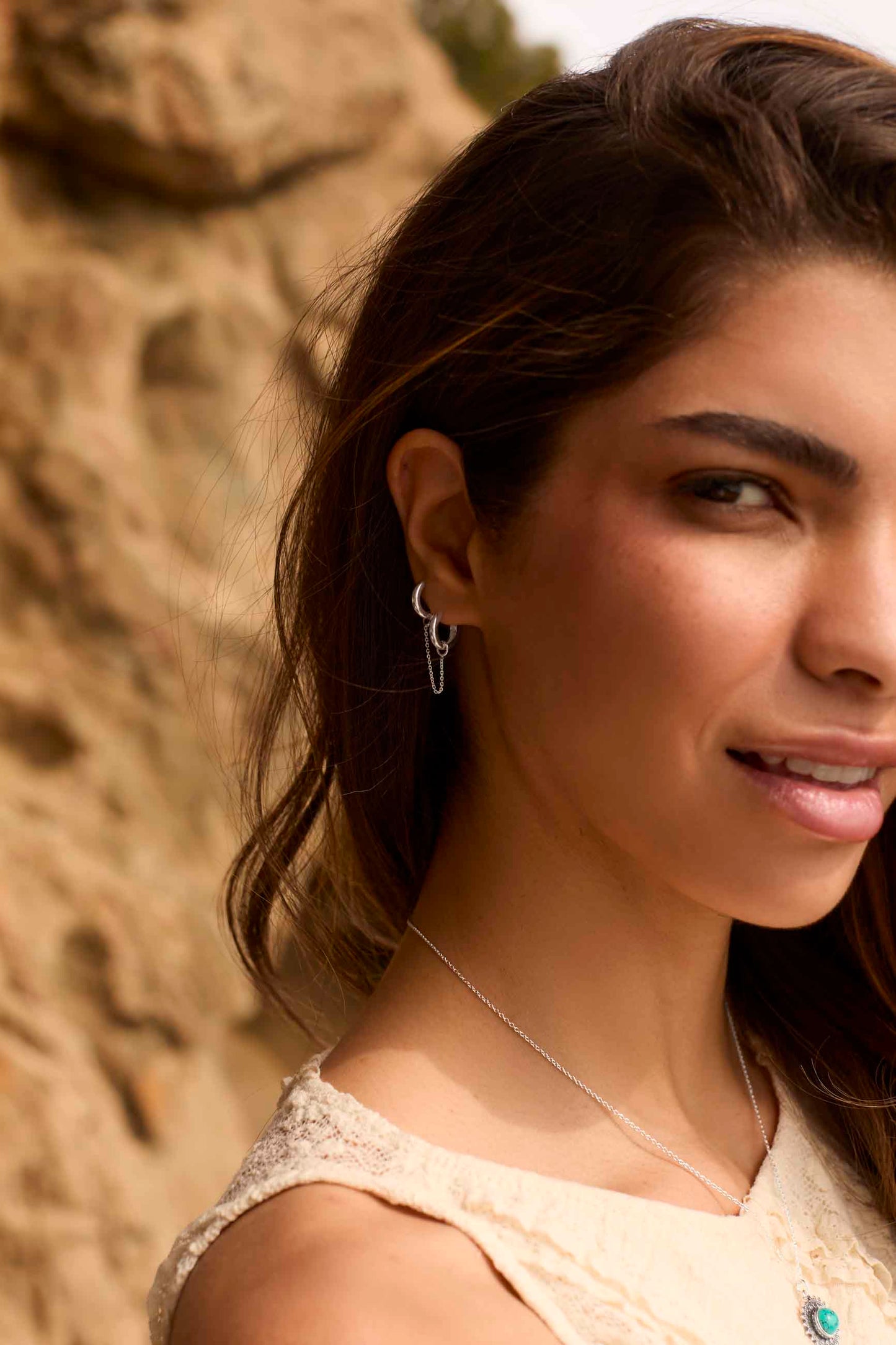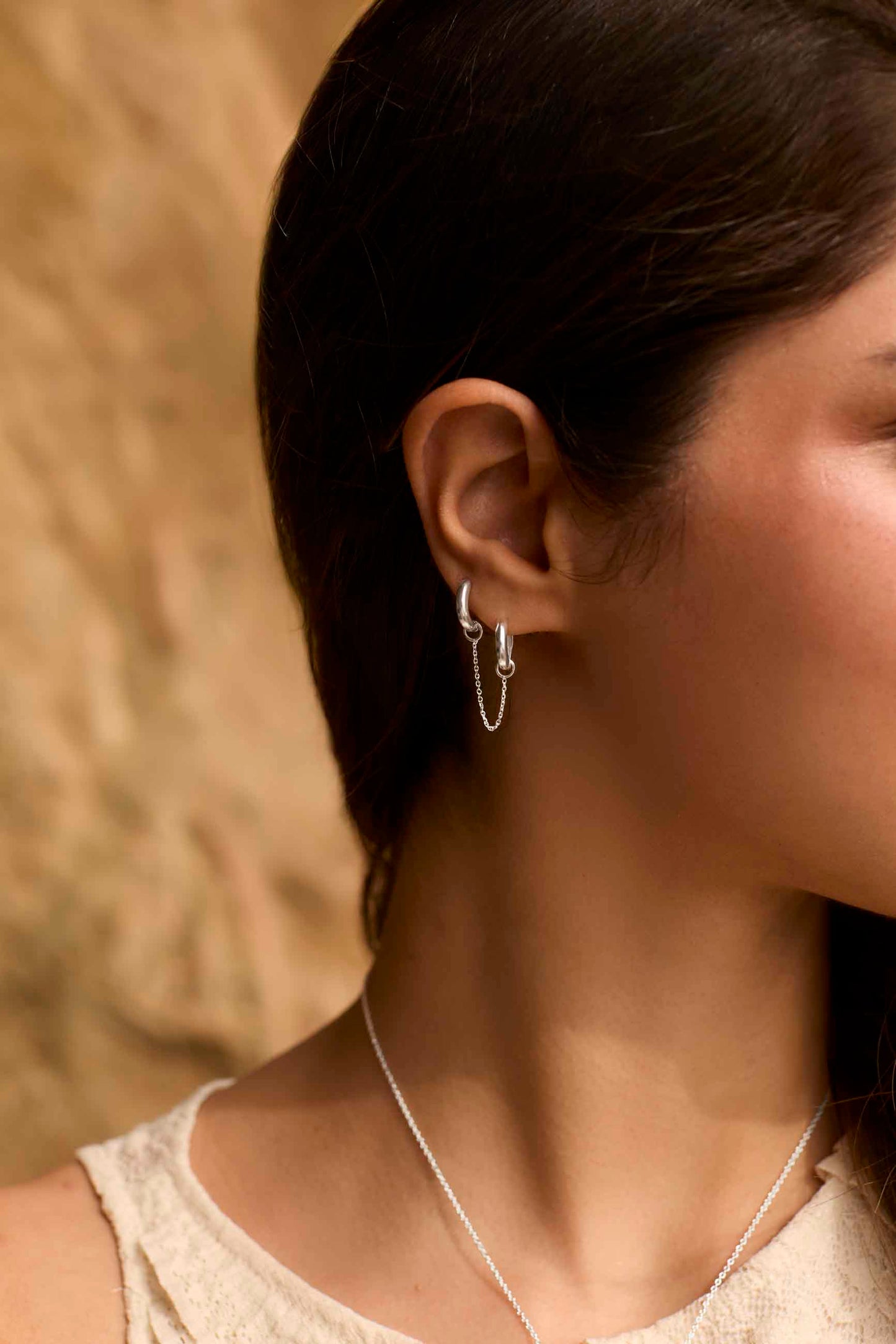 Il LELA è un orecchino a catena con un doppio cerchio spesso, uno a ciascuna estremità. Si tratta di un orecchino realizzato in argento sterling 925 . Un basic da non perdere!