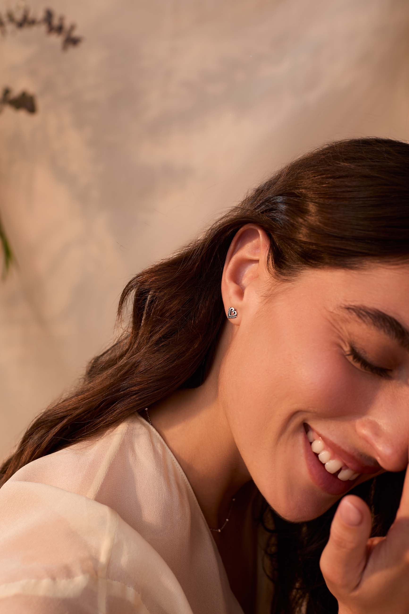 Gli orecchini ANJU ricreano la forma di un cuore, circondati da piccole palline d'argento. Le sue finiture sono realizzate a mano e in Argento Sterling 925.